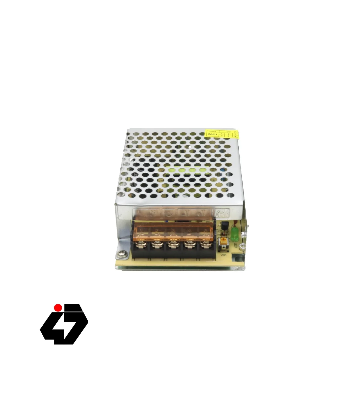 منبع تغذیه صنعتی با خروجی 12 ولت و جریان 15 آمپر، مجهز به بدنه فلزی مقاوم و پتانسیومتر تنظیم ولتاژ، مناسب برای کاربردهای حرفه‌ای و پروژه‌های الکترونیکی.