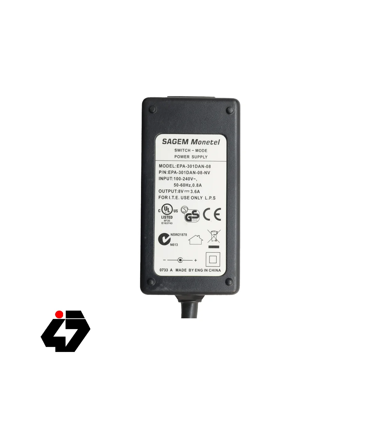 آداپتور بین راهی با ولتاژ خروجی 8V و جریان خروجی 3.6A مارک SAGEM