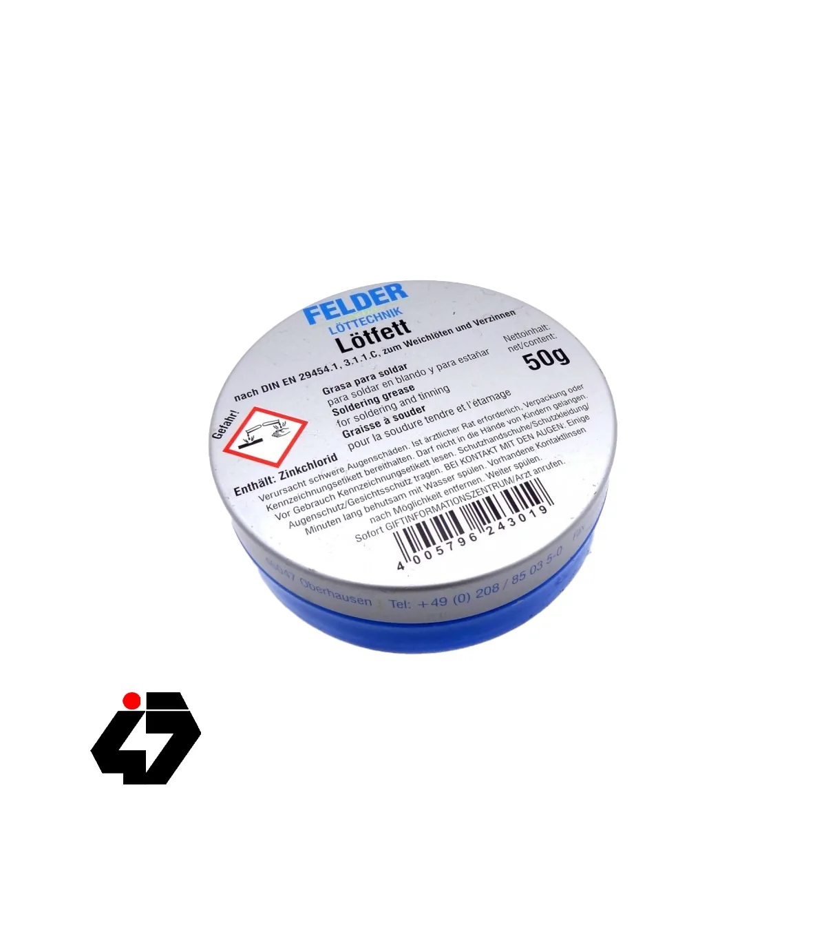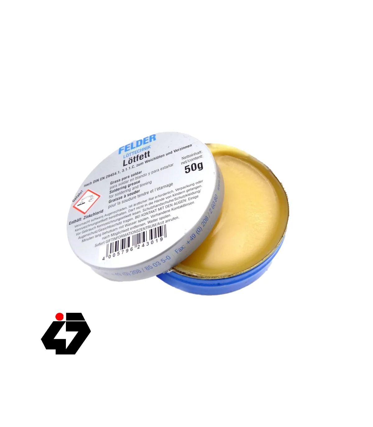حاوی 50 گرم روغن لحیم مرغوب مارک  FELDER جهت بهبود کیفیت در عملیات لحیم کاری