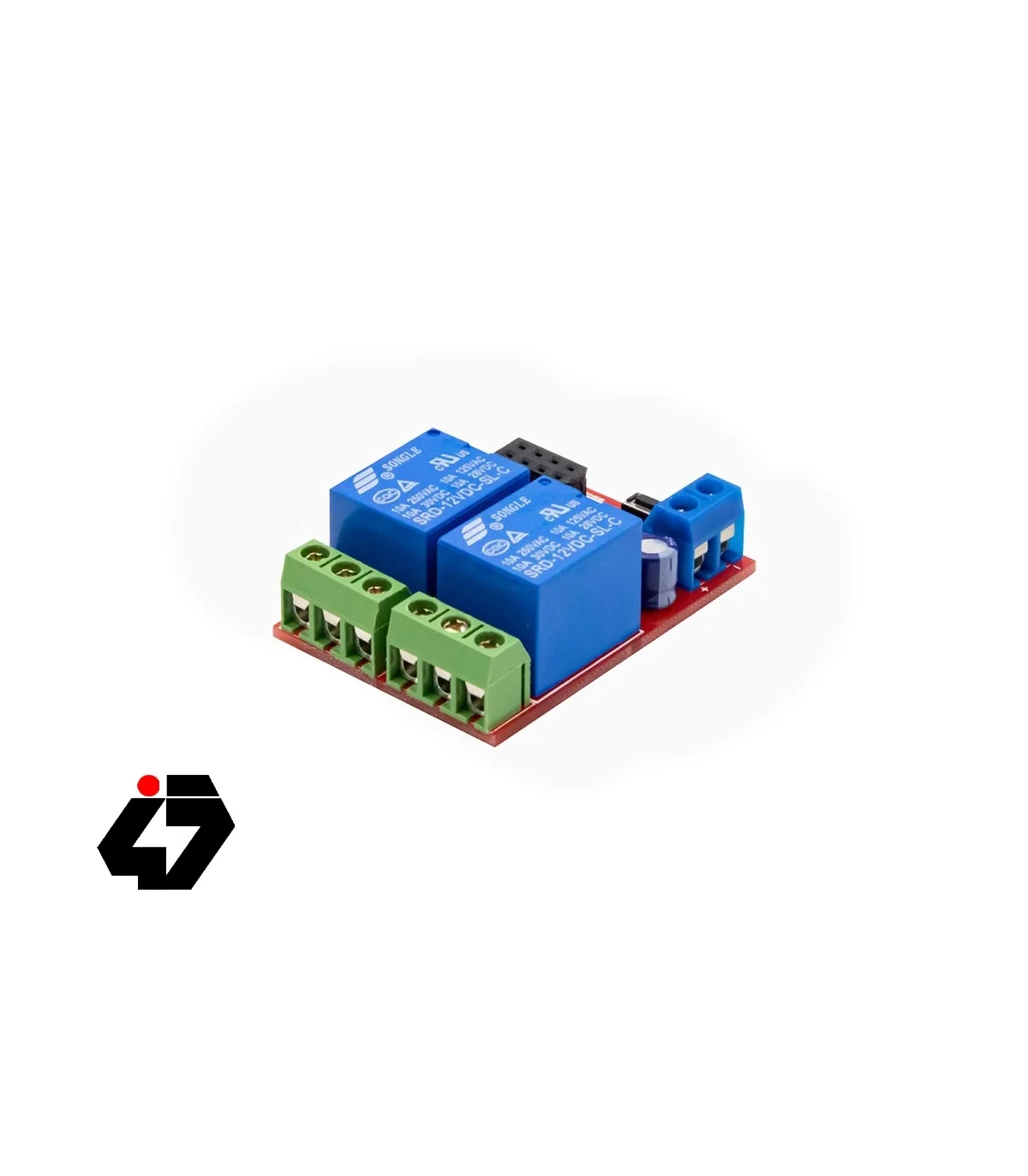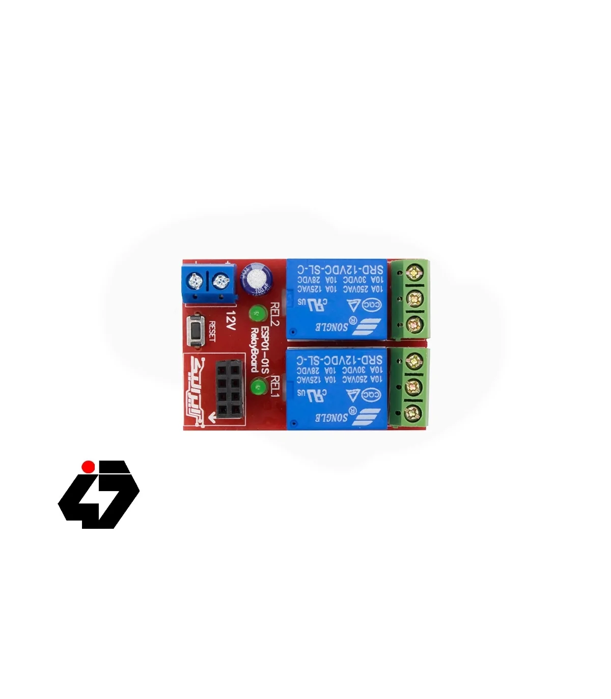 این برد راه انداز مخصوص ماژول وای فای ESP8266 می باشد که از هر دو سری ESP-01 و ESP-01S پشتیبانی می کند. بر روی برد دو رله وجود دارند که به پایه های GPIO0 و GPIO2 (پایه 3 و 5( متصل شده اند. شما می توانید توسط این ماژول هر دو رله را کنترل کنید