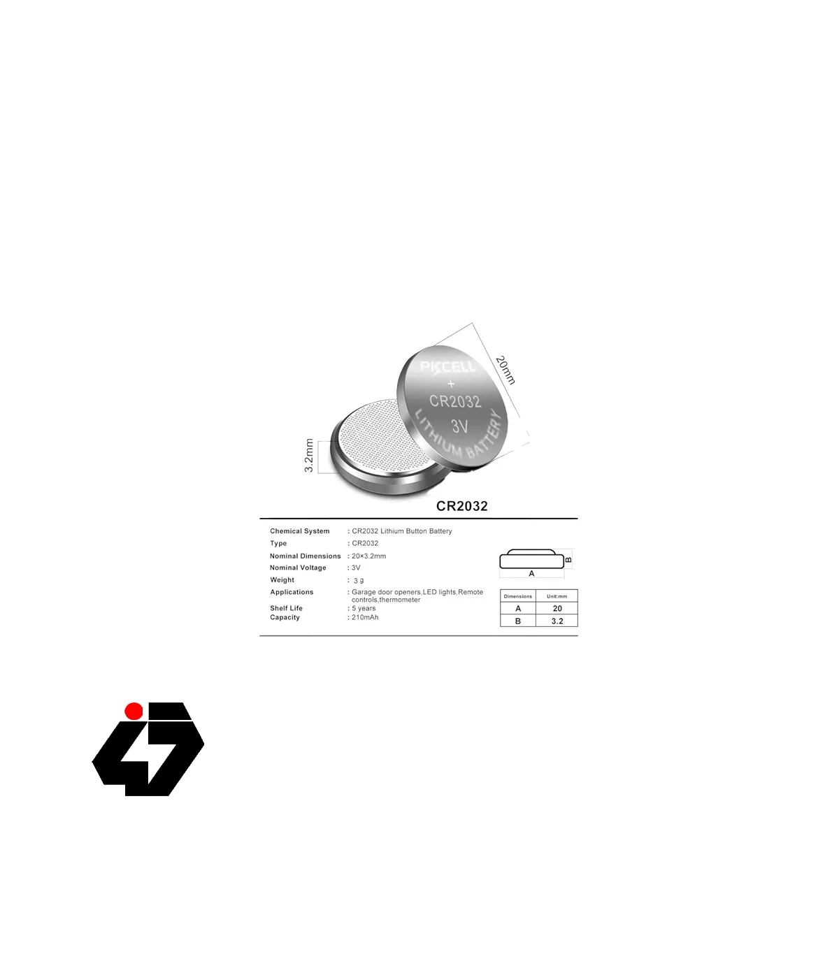 باتری سکه‌ ای «پیکسل» مدل «2032» برای دستگاه‌های سازگار با باتری‌های CR2032 و DL2032 استفاده می‌شود. ولتاژ این باتری 3 ولت، از نوع لیتیومی و برای ریموت، دزدگیر ماشین، ترازو، اسباب بازی، ماشین حساب و... مناسب است.بسته بندی این محصول دارای 5 کارت باتری سکه ای 2032 پیکسل میباشد. باتری پیکسل دارای استاندارد های اروپا و آمریکا میباشند و در سایت های بزرگی مانند آمازون نیز به فروش میرسند و دارای درصد رضایت بالای 85 درصد میباشند.