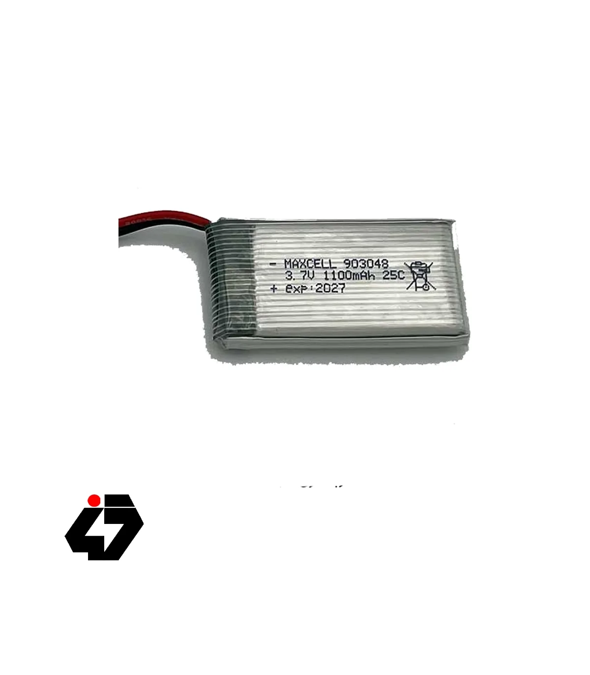 این باتری پهباد 3.7 ولت 1100 میلی آمپر بر ساعت است و نباید این باتری با شارژر مثلا آمپر بالاتر شارژ شود و بهتر است در طراحی شارژر از محدود کننده جریان استفاده شود. سایز باتری 903048 است که به معنی ابعاد آن است.