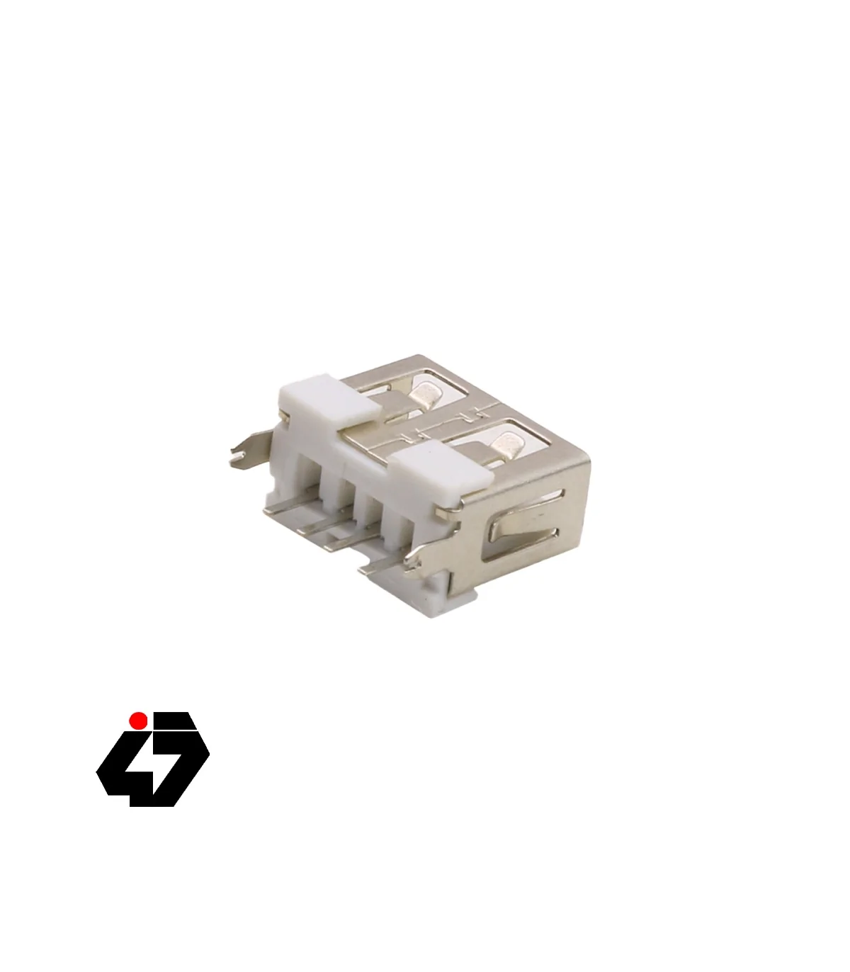 کانکتور USB-A مادگی ایستاده کوتاه 10mm، با بدنه ترموپلاستیک و پوشش نیکل‌پوش، مناسب برای انواع تجهیزات الکترونیکی و دیجیتال.