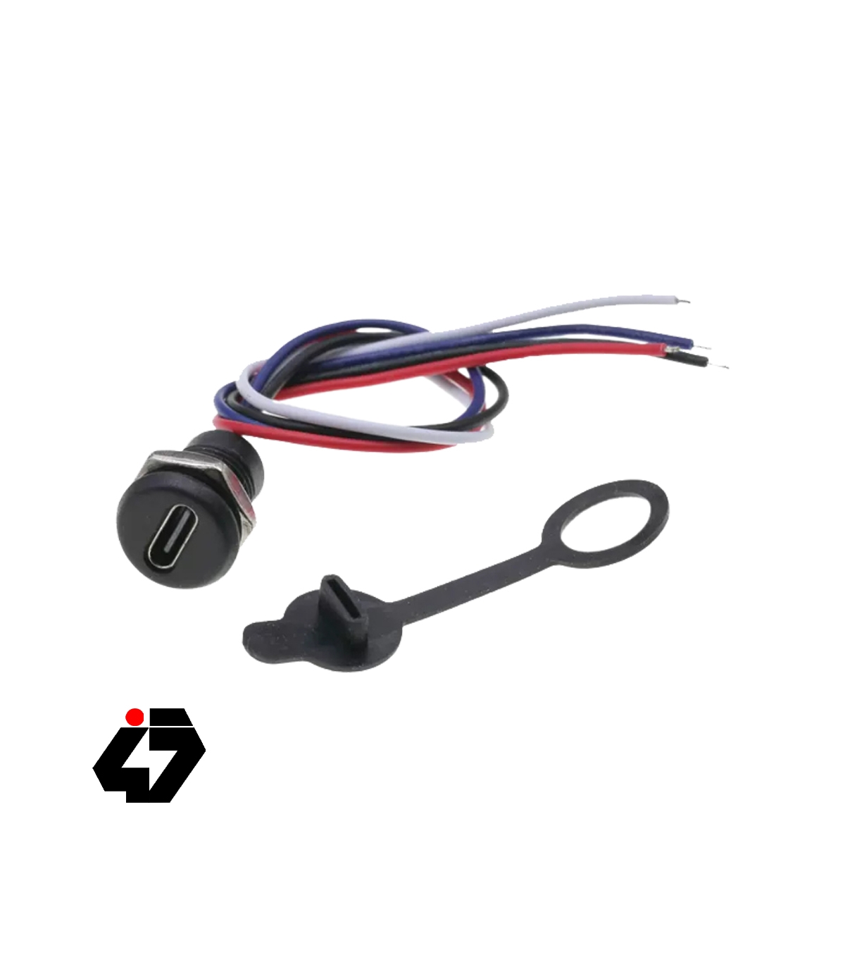 کانکتور USB Type-C مادگی 4 سیم روپنلی گرد مهره خور دارای درپوش ژله ای با سیم 15 سانتی متر مناسب برای انتقال دیتا و تغذیه