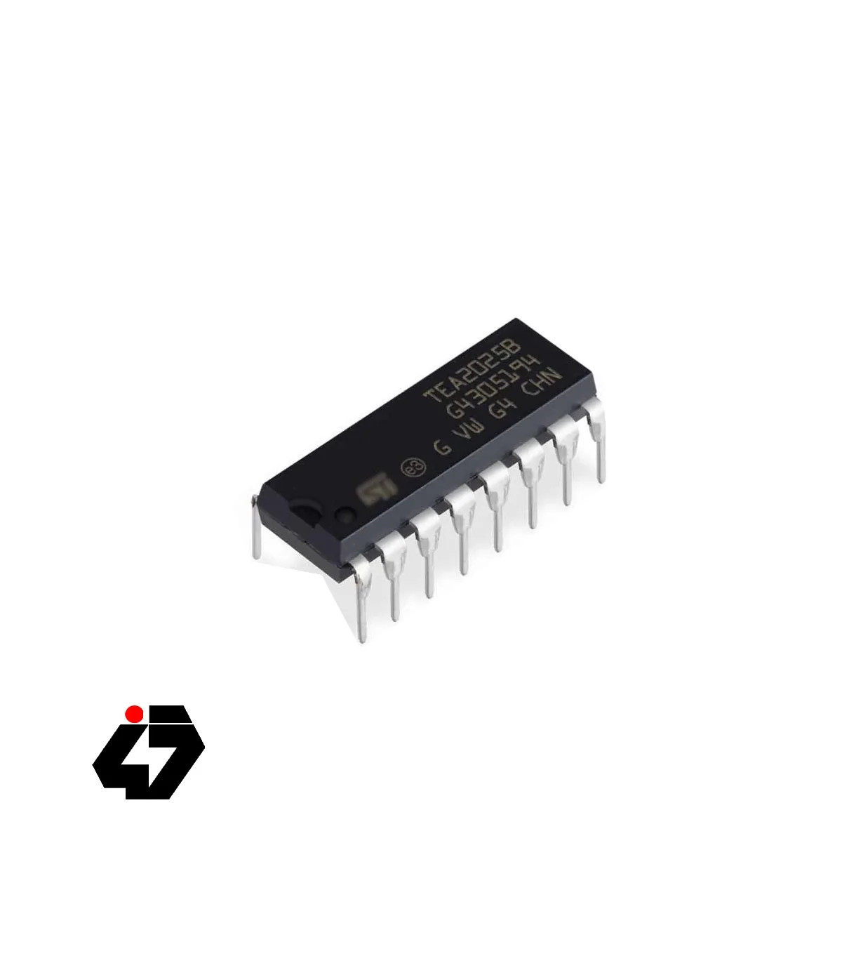 آی سی TEA2025 یک تقویت کننده صوتی استریو با گین مامزیمم 45dB و توان خروجی ماکزیمم 2.3 وات می باشد.