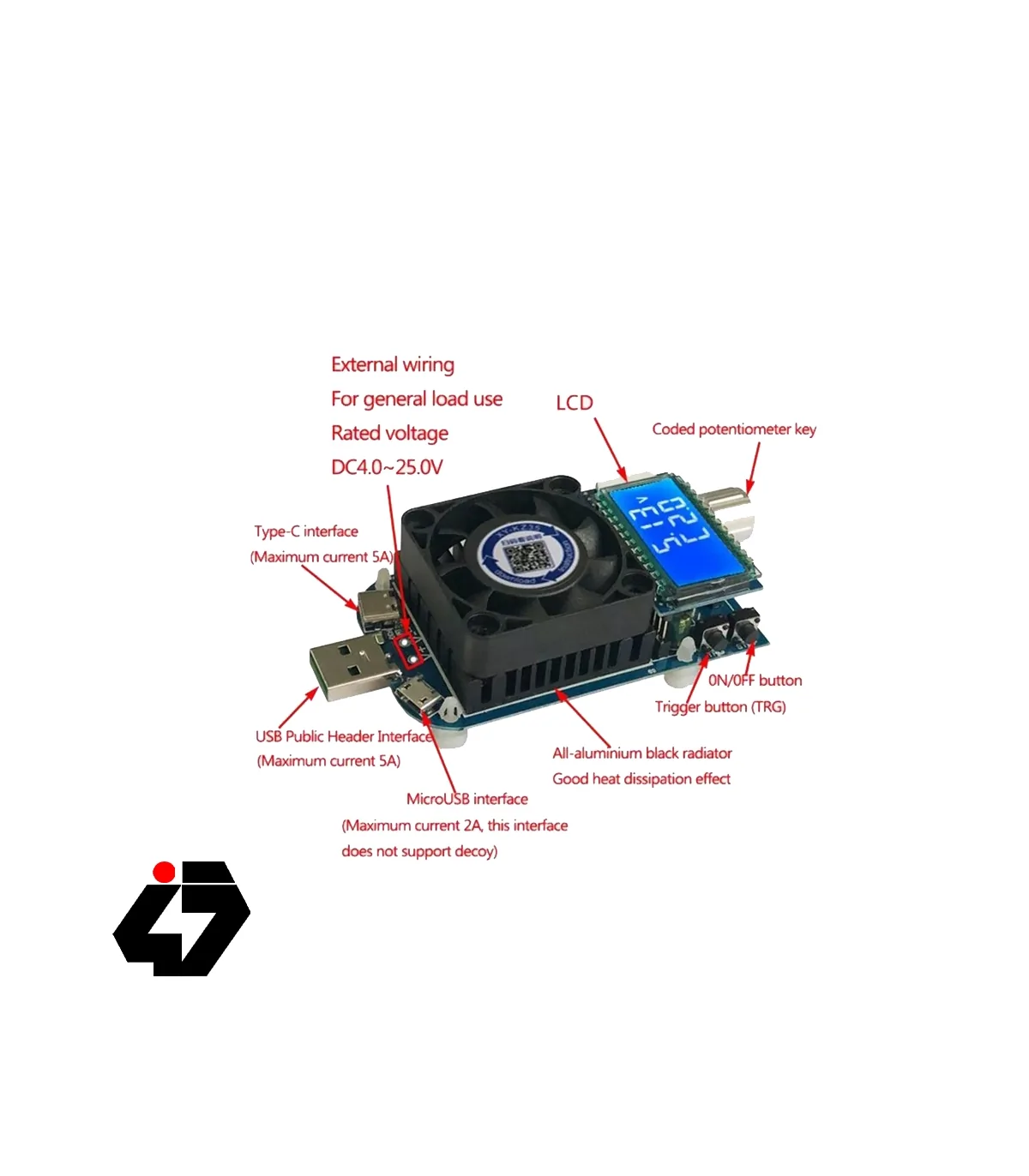 لود تستر باتری برای تست میزان آمپر دهی باتری،پاور بانک و... با امکان اتصال ولتاژ خارجی و نمایش زمان تخلیه باتری