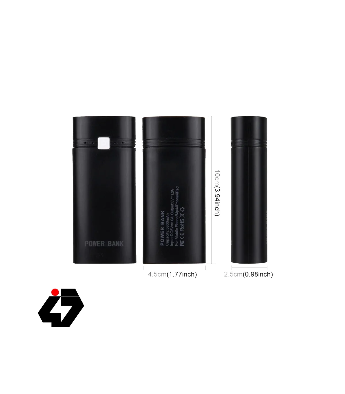 Using this case, you can easily make a power bank for yourself by connecting 3.7 volt lithium ion batteries (up to 2 batteries) and use it. Note that you must use 18650 size batteries for this case.