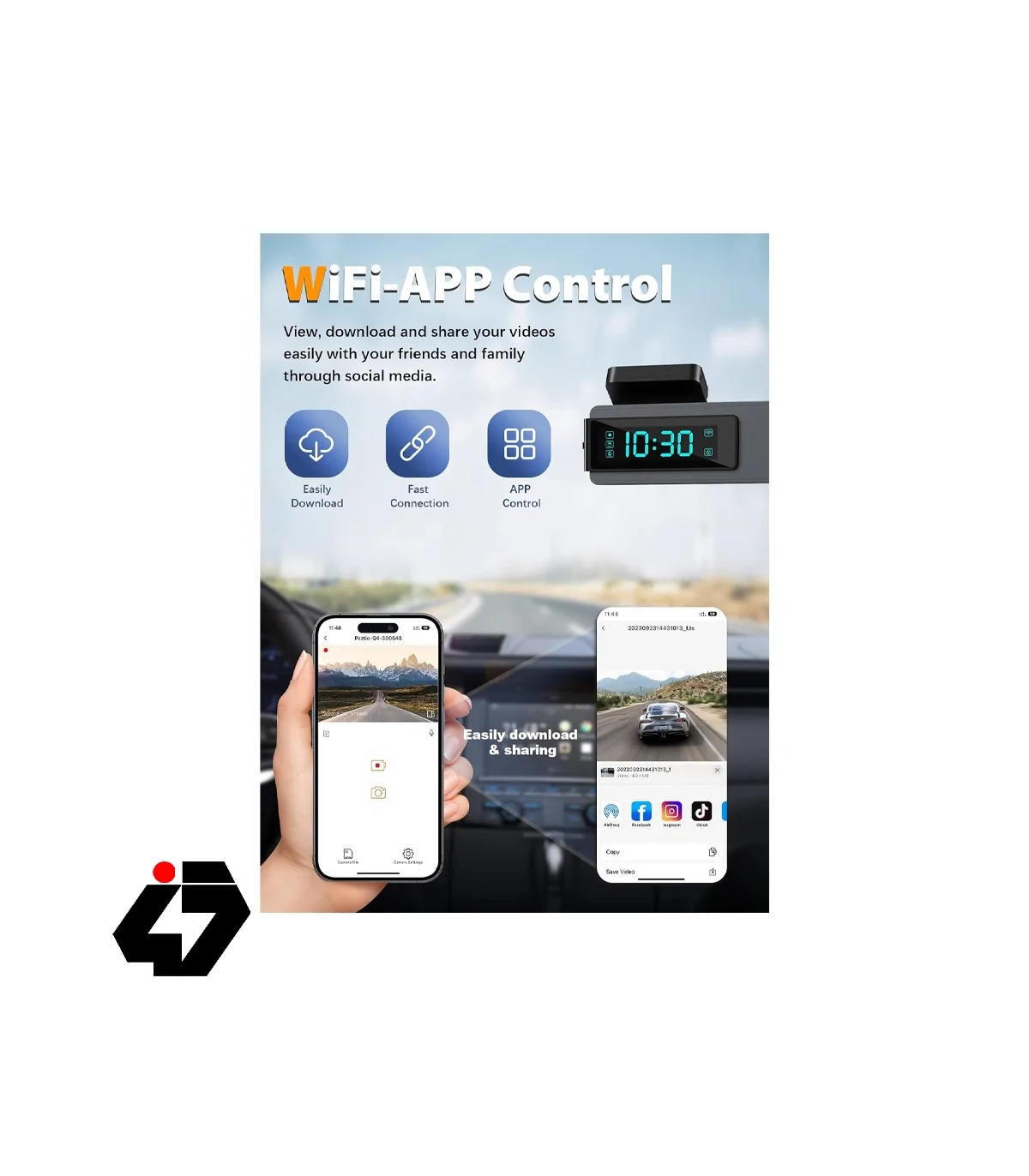 یفیت این دوربین 4k واقعی میباشد و زاویه دید ۱۷۰ درجه ای دارد که راحت هم جلو کابین خودرو و هم عقب خودرو تحت پوشش دوربین است،این دوربین قابلیت ساپورت رم تا ۱۲۸ گیگ را دارد که به وسیله رم ۱۲۸ گیگ میتوانید تا ۱۰ ساعت مداوم تصاویر را ضبط کنید،از دیگر قابلیتهای این دوربین ضبط صدا همراه با تصاویر است،این دوربین دارای اپلیکیشن اندروید و IOS است که به وسیله وای فای دوربین شما میتوانید به گوشی متصل شوید و تصاویر ضبط شده دوربین را ببینید،از دیگر قابلیت دوربین دارای WDR بودن دستگاه است که تصاویر دوربین را به بهترین شکل ضبط میکند و هیچ نور مستقیمی نمیتواند تصاویر دوربین را خراب کند حتی نور زنون خودرو،این دوربین قادر است همزمان هم دوربین جلو و هم دوربین عقب را ضبط کند،این دوربین داری زوم ۴ برابری است،و دارای نمایشگر زمان و تاریخ است و قابلیت ضبط تصاویر به صورت مداوم را دارد،این دوربین در شرایط آب هوای نامناسب مثل مه و بارانی به خوبی تصاویر را ضبط میکند و قابلیت لرزشگیر هم دارد