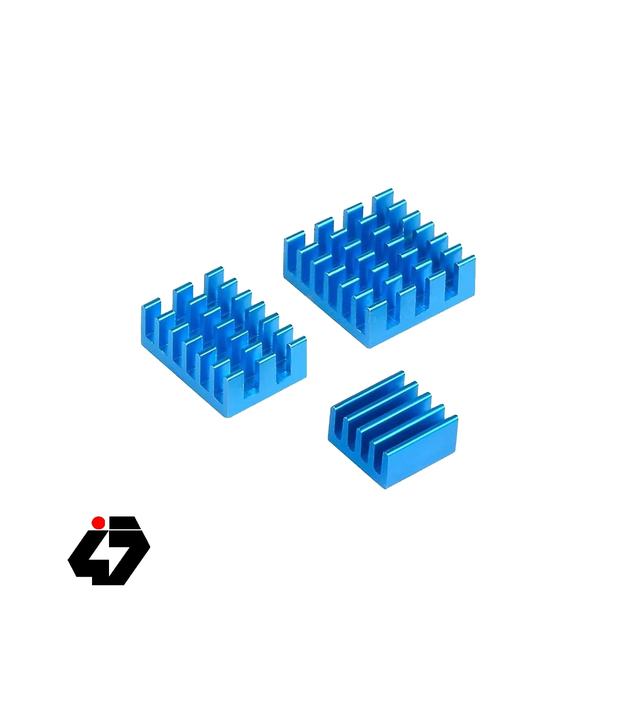 ست کامل هیت سینک مخصوص رزبری پای، این ست از دو هیت سینک یکی مخصوص تراشه اصلی و دیگری مخصوص تراشه گرافیکی رزبری پای است. این مدل دارای چسب مخصوص نصب بر روی آی سی میباشد.