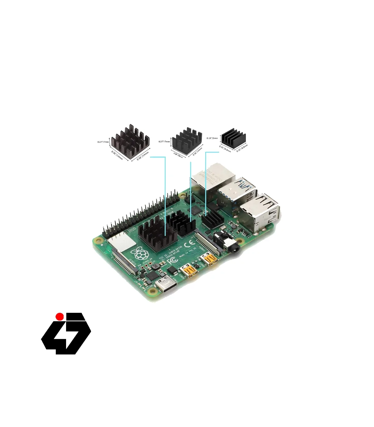 سه عدد هیت سینک آلومینیومی مخصوص تراشه های CPU ، LAN و USB رزبری پای