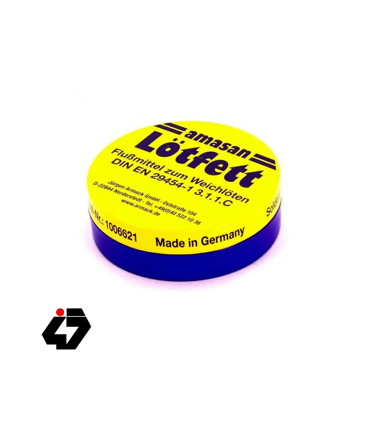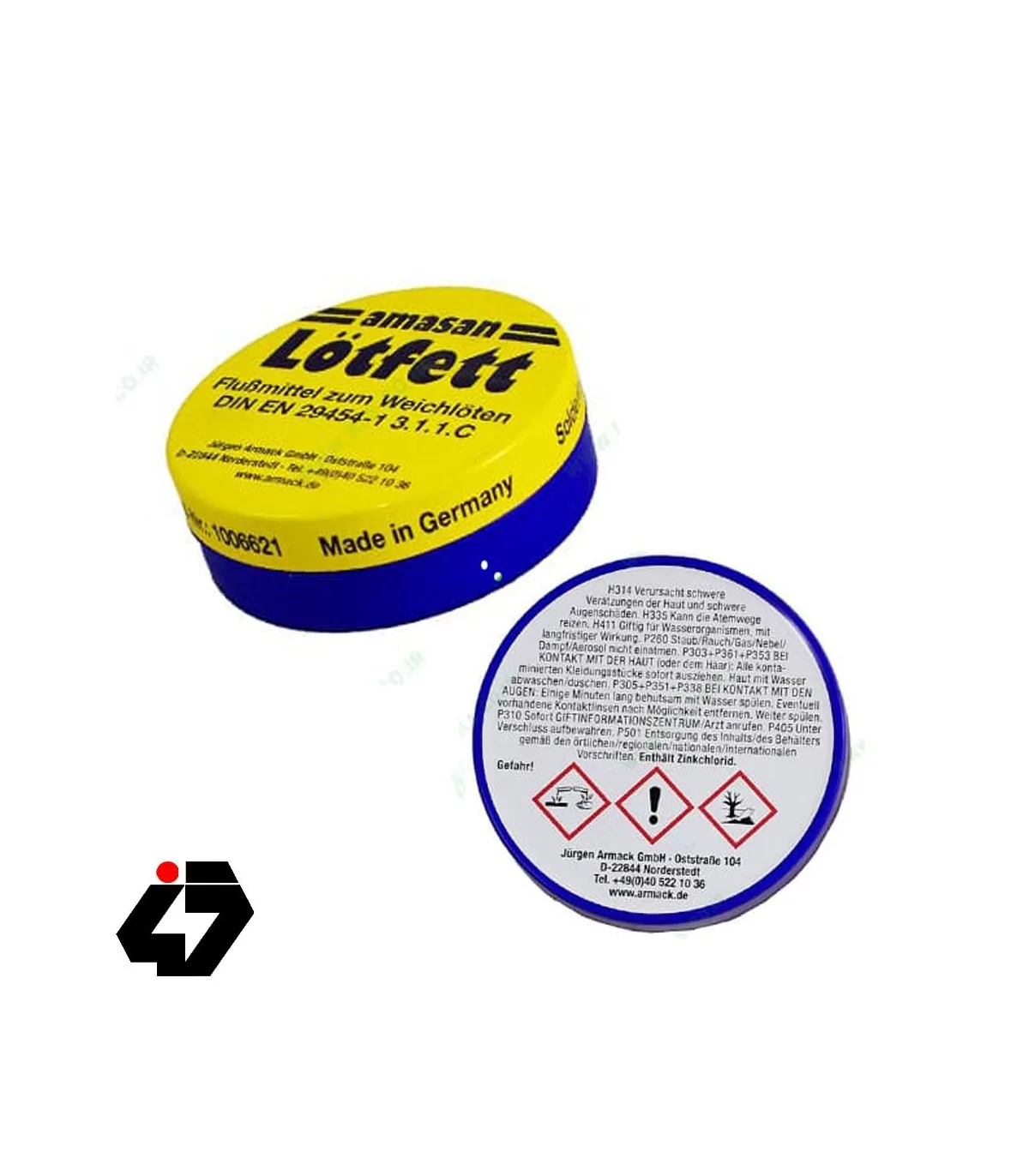 روغن لحیم آلمانی 50 گرمی LOTFETT، مناسب لحیم کاری حرفه ای قطعات الکترونیکی، افزایش کیفیت لحیم، جلوگیری از اکسیداسیون و بهبود جریان قلع در تعمیرات برد و مونتاژ PCB است.