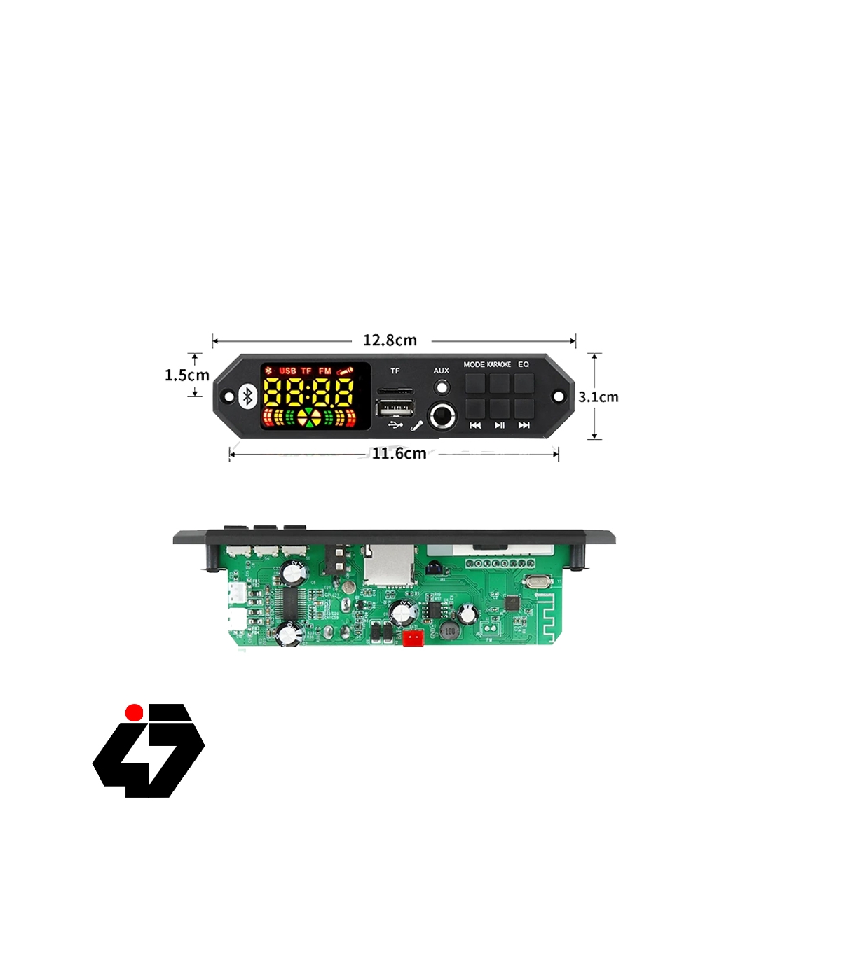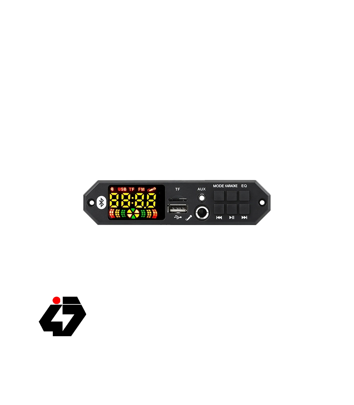 پخش کننده پنلی با ولتاژ ورودی 7 تا 24 ولت دی سی و جریان مصرفی حداقل 2 آمپر و جک ورودی 6.5 میلی متری با بلوتوث ورژن 5 و دارای میکروفون سر خود امکان پخش موسیقی با استفاده از فایل های MP3 و فرمت های رایج دیگر را دارا می باشد.این دستگاه از فناوری بلوتوث برای اتصال به دستگاه های دیگر مانند گوشی های هوشمند استفاده می کند.