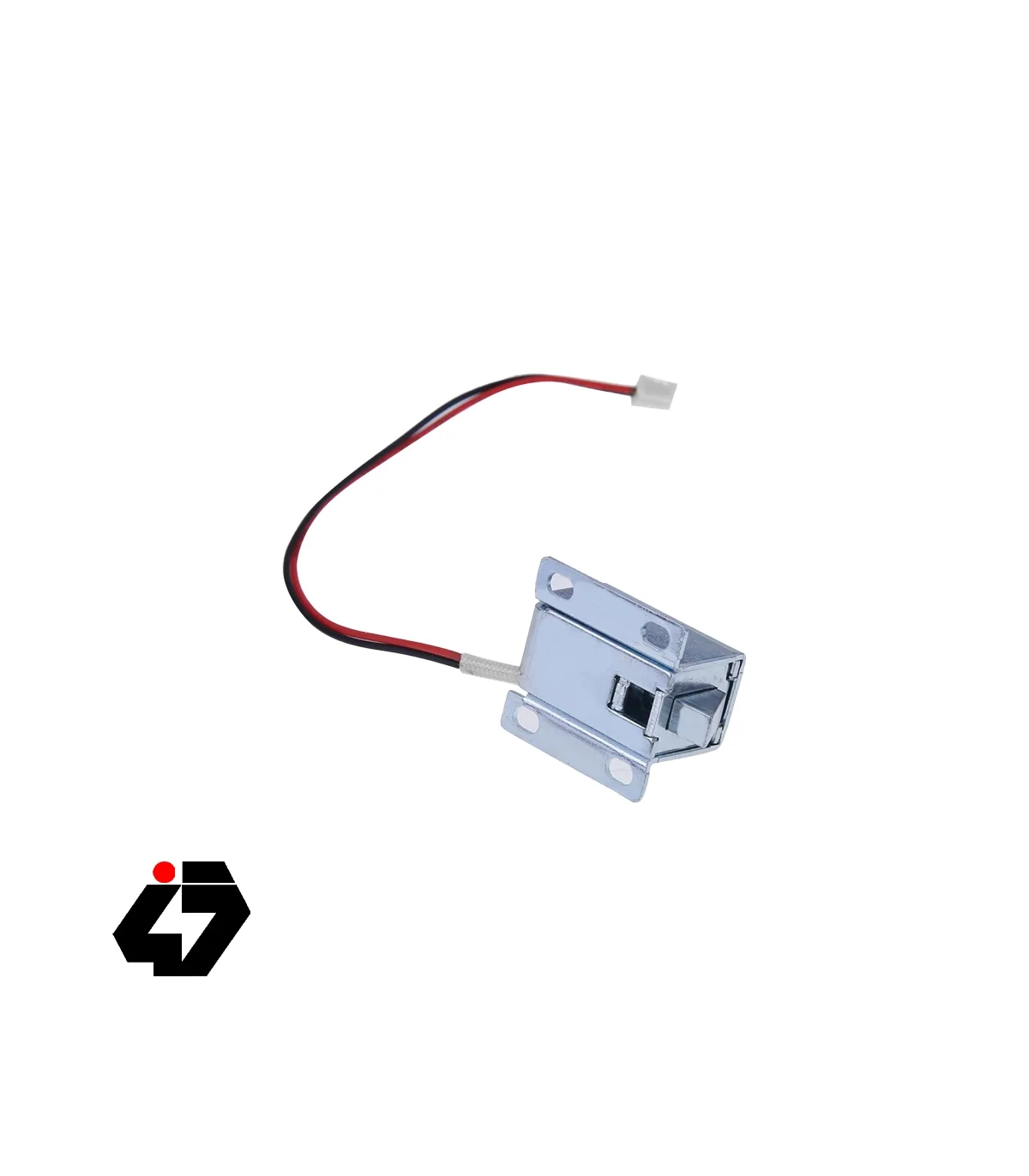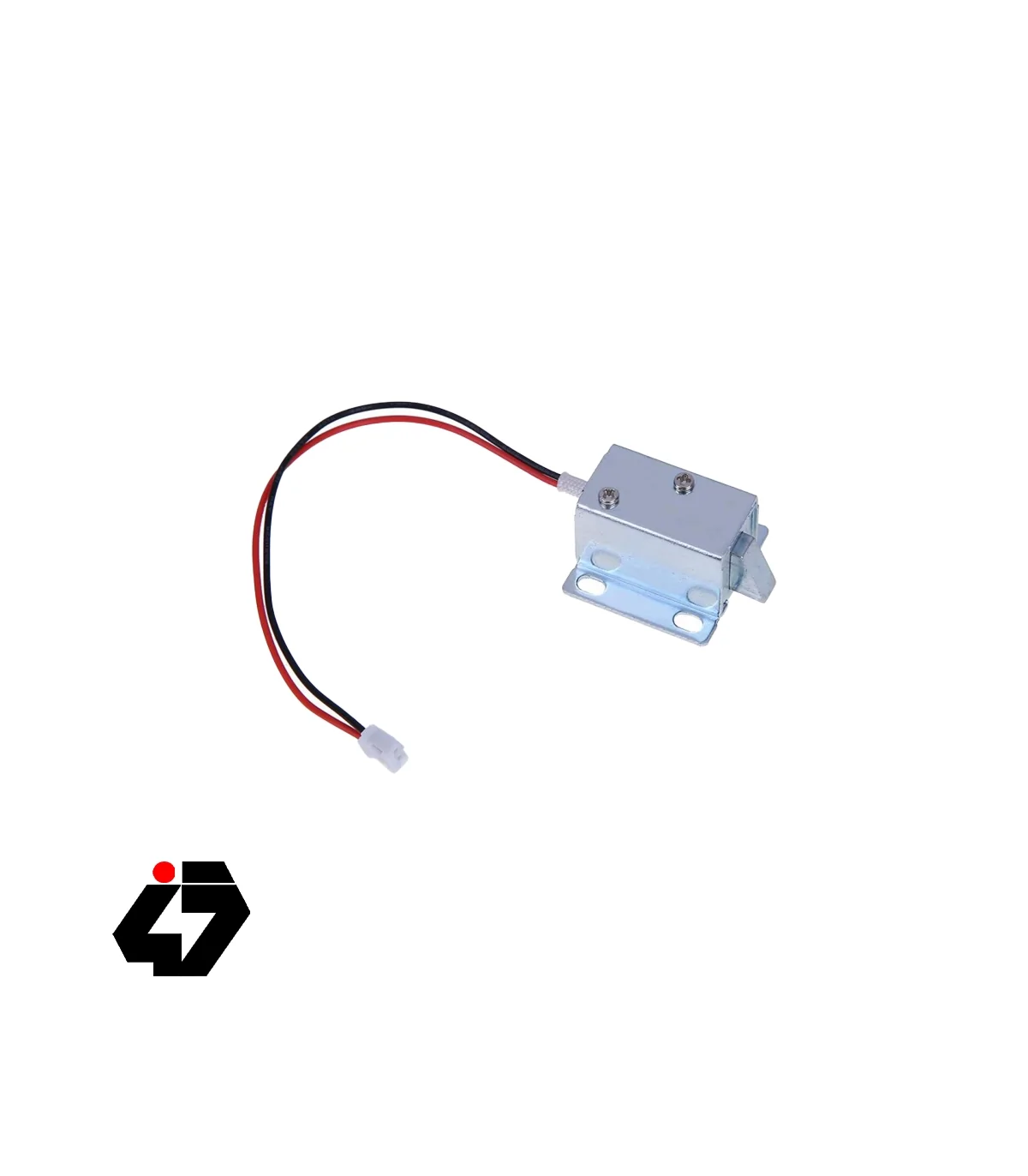 در این قفل الکترونیکی که از هسته سلونوئید استفاده شده است در واقع زبانک قفل حکم هسته این سیم پیچ سلونوئید را دارد و در هنگام فرمان دادن به این سیم پیچ که با ولتاژ 12 ولت DC کار میکند ، سیم پیچ هسته یا همان زبانک را به داخل میکشد و درب را باز میکند. این قفل الکترونیکی که محدوده ولتاژ کاری آن بین 9 تا 12 ولت DC و جریان نامی آن در محدوده 1 آمپر است، برای مصارفی همچون درب کابینت، درب کمد و ... طراحی شده است.