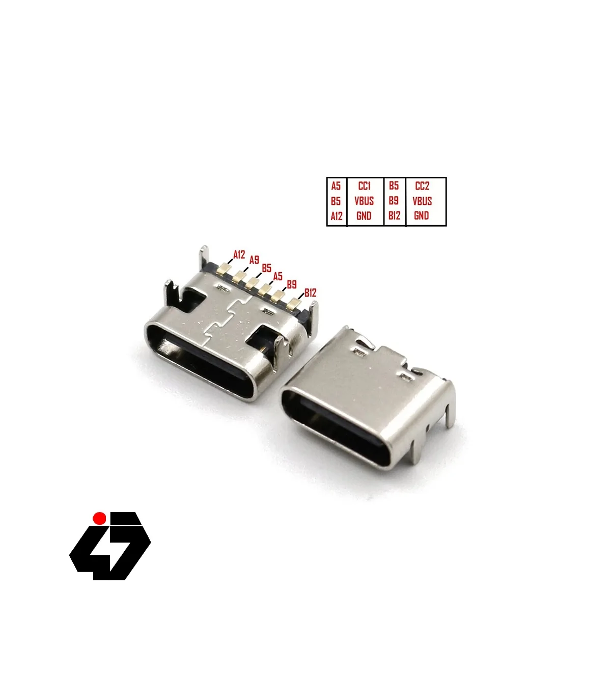 کانکتور Type-C مادگی 6pin با هولدر 4 پایه یک قطعه الکترونیکی با کیفیت بالا است که برای اتصال دستگاه‌های مختلف به پورت USB Type-C طراحی شده است. این کانکتور با طراحی مقاوم و پایه‌های نگهدارنده، مناسب برای استفاده در بردهای مدار چاپی (PCB) و دستگاه‌های الکترونیکی مختلف می‌باشد.