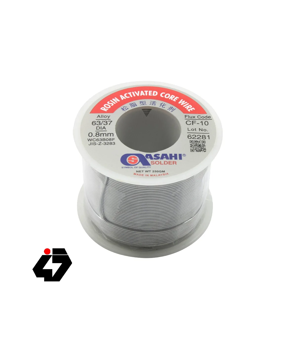 سیم لحیم ASAHI با قطر 0.8 میلیمتر 250 گرمی، مخصوص مونتاژ قطعات DIP ، SMD و تجهیزات صنعتی