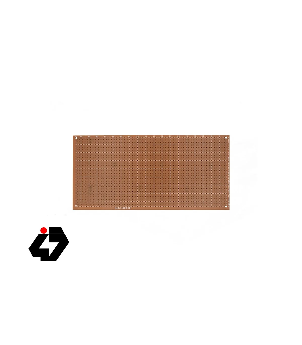 این محصول یک برد سوراخ دار با ابعاد 24.5x11.7 سانتیمتر جهت لحیم کردن قطعات است و می تواند برای ساخت نمونه های اولیه انواع مدارات مورد استفاده قرار گیرد.