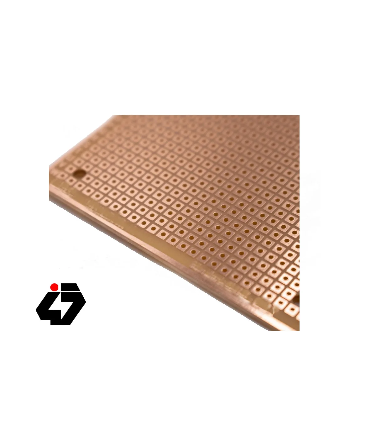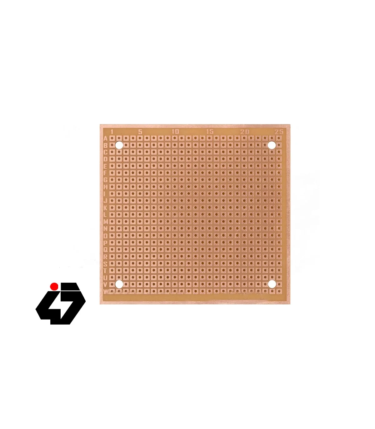 این محصول یک برد سوراخ دار جهت لحیم کردن قطعات با ابعاد 75x70x2 میلیمتر است و می تواند برای ساخت نمونه های اولیه انواع مدارات مورد استفاده قرار گیرد.