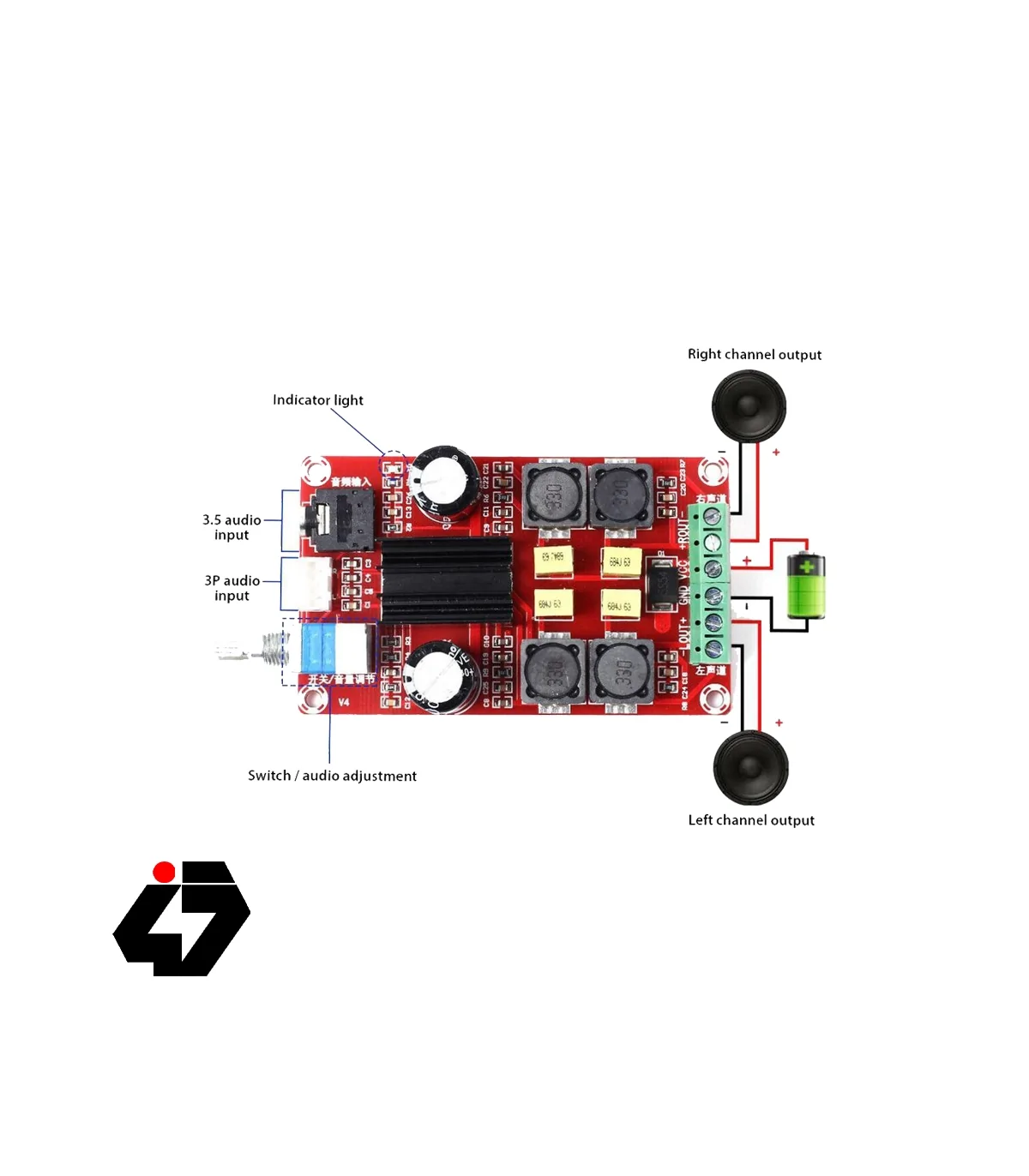 یا تقویت کننده صوتی دوکاناله 100 وات استریو که از تراشه TPA3116D2 بهره می برد از نوع تقویت کننده های کلاس D بوده که دارای بازده بیش از 90% هستند .