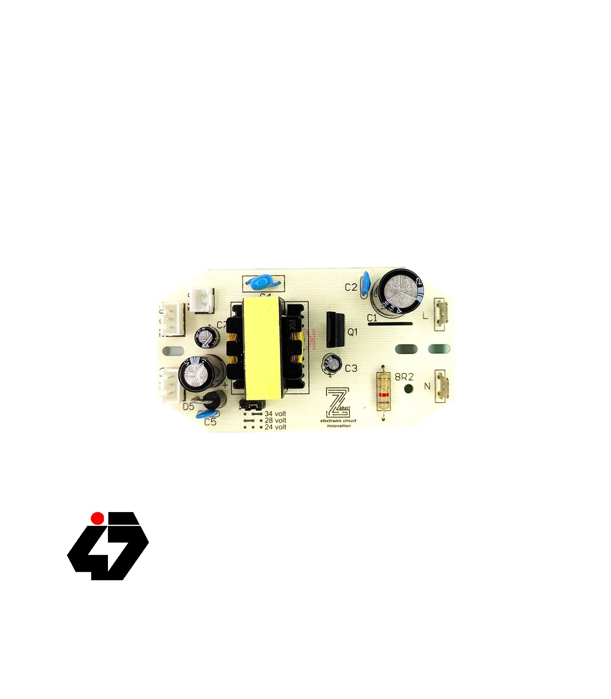 ولتاژ خروجی توسط جامپر کنار ترانس روی 24 و 28 و 34 قابل تنظیم است.