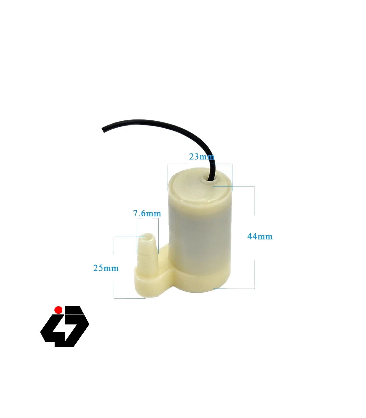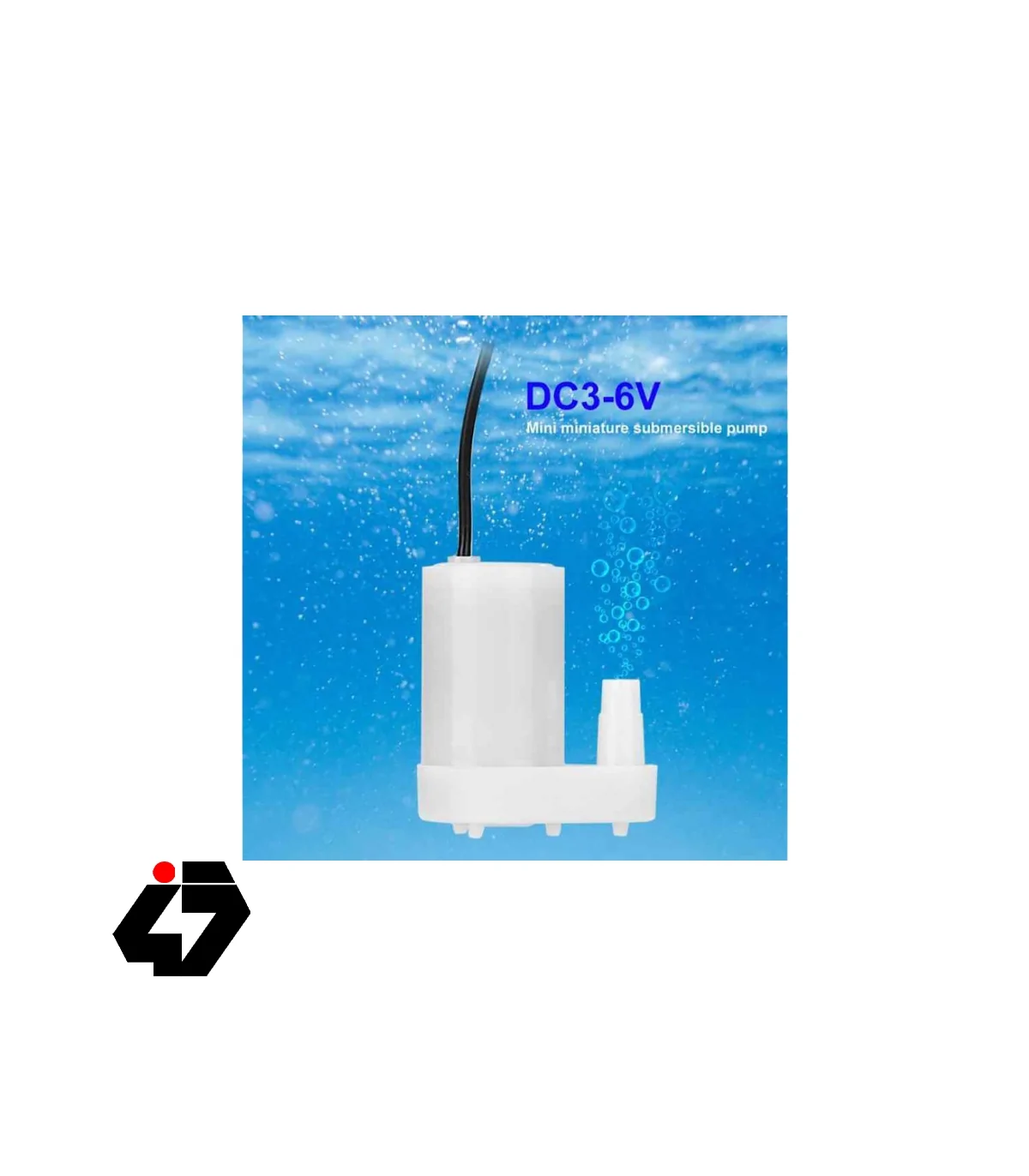 پمپ آب عمودی DC و ولتاژ کاری 3 تا 5 ولت با دبی 1.6 لیتر در دقیقه و توان پرتاب 0.8 متر، مناسب برای پروژههای سبک و قابلحمل