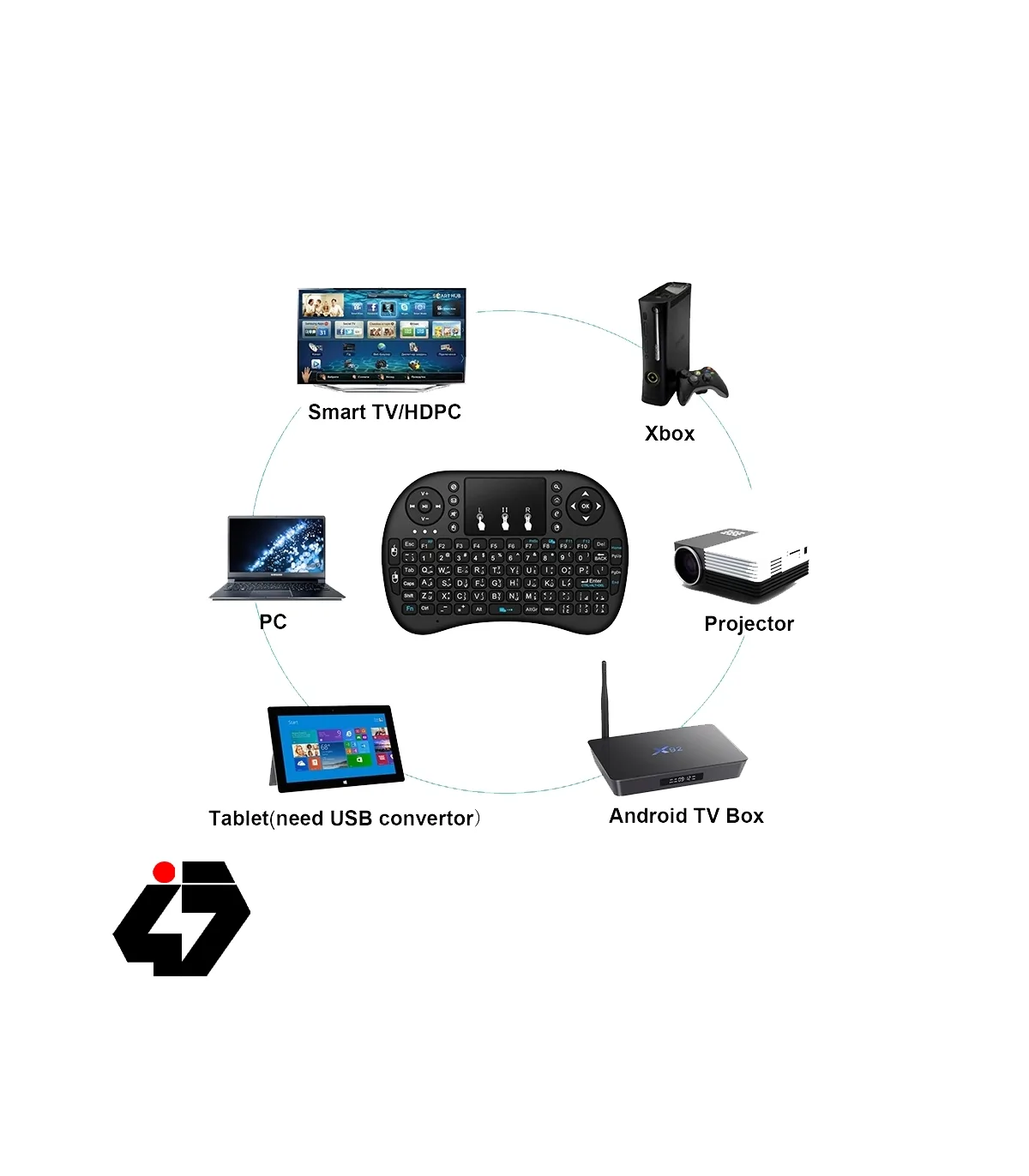ابتدا از درب پشت کیبرد دانگل وایرلس کیبرد را به پورت USB خودتون وصل کنید کلید on/off روی کیبرد بزنید تا کیبرد روشن شود . پس از شناسایی کیبرد یک بار کیبرد رو خاموش و روشن کنید و از استفاده آن لذت ببرید! علاوه بر کیبورد، دارای تاچ پنل (شبیه لپ تاپ) می باشد. ارتباط آن به صورت بی سیم (2.4GHZ) و با برد حداکثر 10 متر امکان پذیر می باشد.