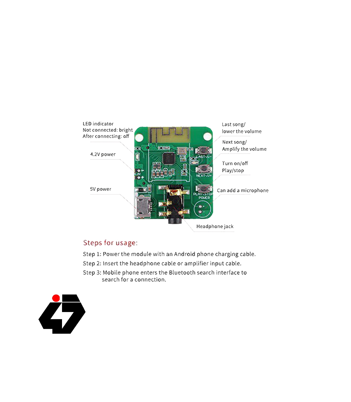 این برد بمنظور توسعه و راه اندازی ماژول بلوتوث صوت بکار میرود. بر روی این بورد کلیدهایی به منظور کاهش یا افزایش صدا،پخش یا توقف،و... و همچنین جک خروجی صدا استریو 2 کاناله درنظر گرفته شده است.