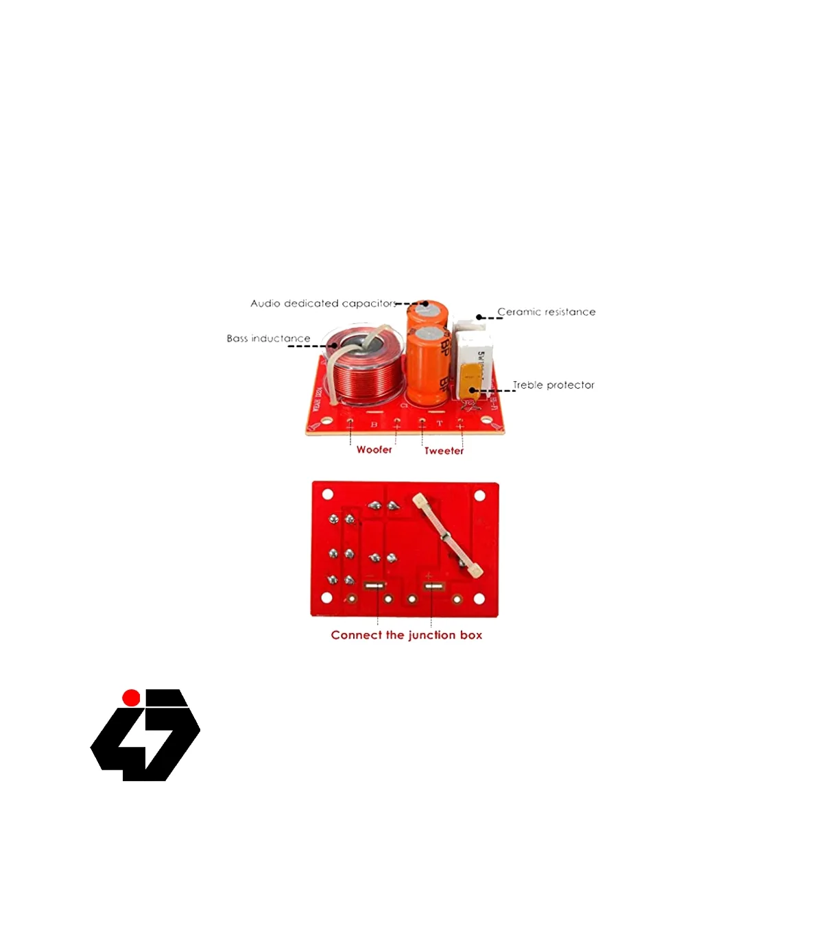 ماژول تقسیمکننده فرکانس صوتی دوطرفه با توان 80 وات، مناسب برای تفکیک سیگنالهای بیس و تریبل در سیستمهای صوتی با امپدانس 4 تا 8 اهم.