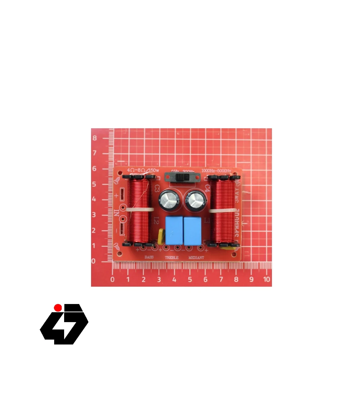 ماژول تقسیم‌کننده فرکانس صوتی دوطرفه با توان 80 وات، مناسب برای تفکیک سیگنال‌های بیس و تریبل در سیستم‌های صوتی با امپدانس 4 تا 8 اهم.