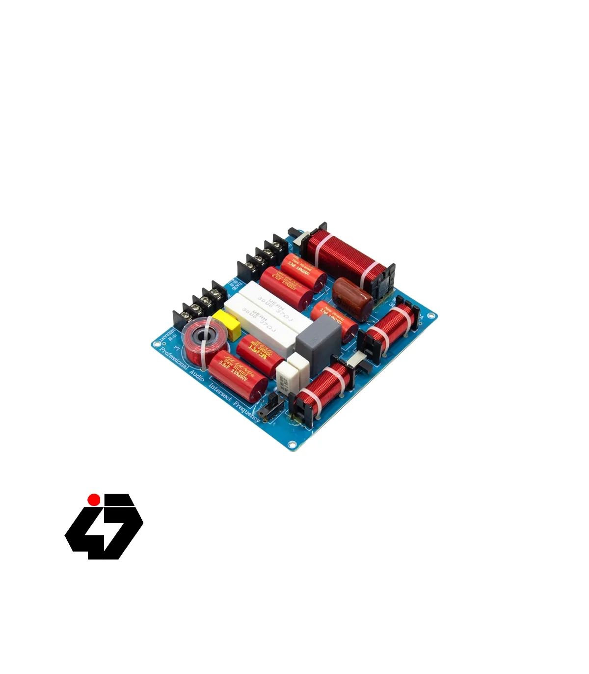 The frequency divider uses high-quality metal film capacitors, high-power resistors, large inductors, adjustable switches, and solder- terminals.