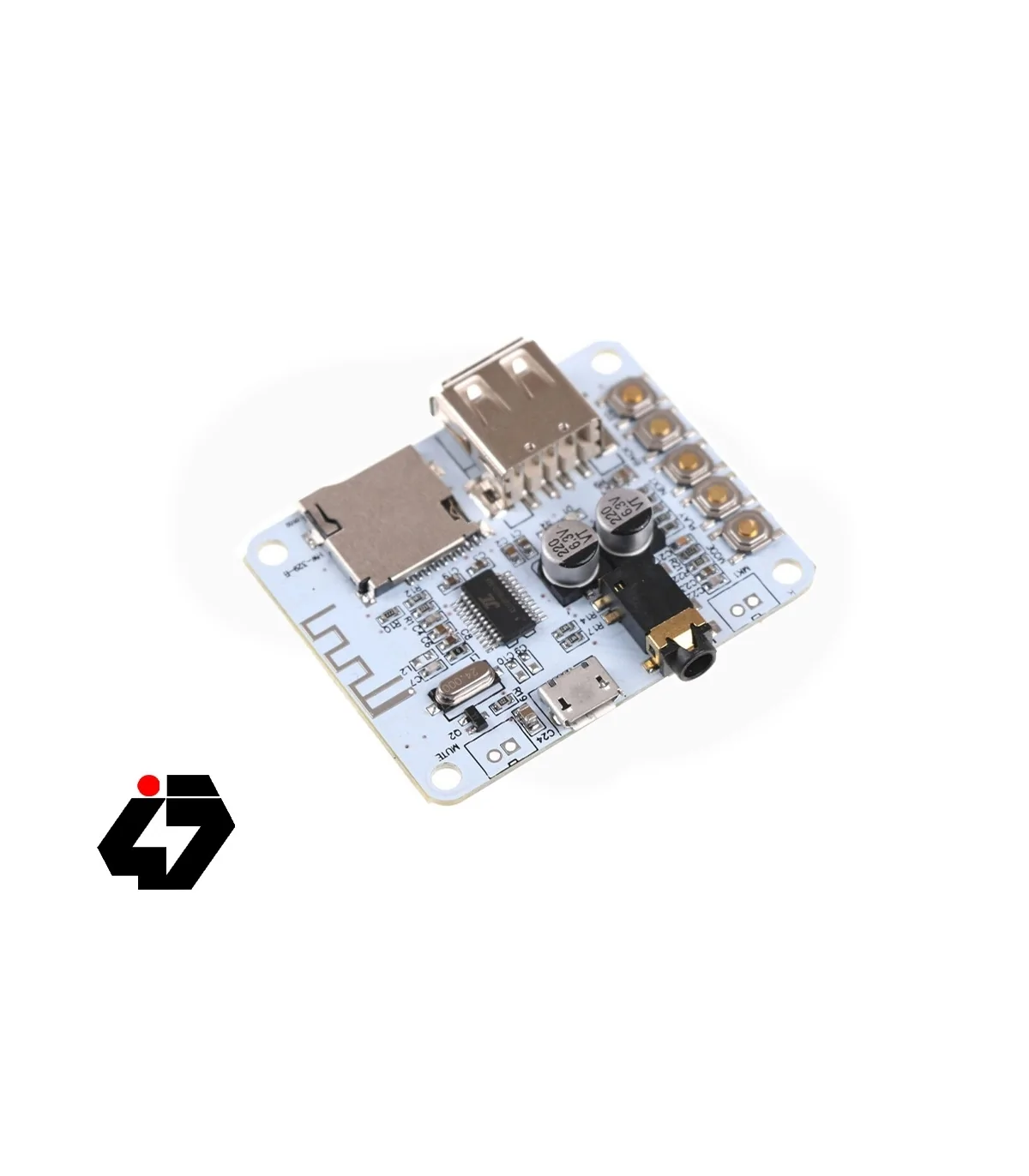 All playbacks are controlled by buttons, and a sound equalizer is built-in to meet different favor. With its compact design and 5V DC power requirement, this is an ideal module to add a Bluetooth feature to your car or turn an old loudspeaker into a wireless Bluetooth speaker.