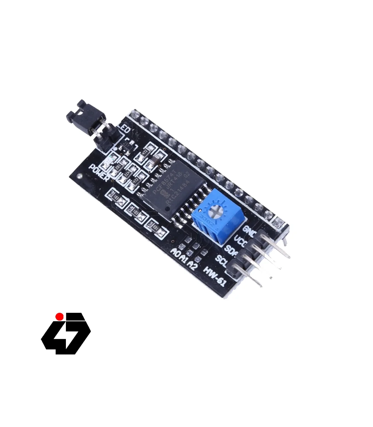 ماژول سریال I2C مخصوص نمایشگرهای کاراکتری یک مبدل رابط I2C برای نمایشگرهای LCD کاراکتری استاندارد است که امکان کنترل این نمایشگرها را تنها با استفاده از دو پین دیتا (SDA و SCL) فراهم می‌کند. این ماژول با استفاده از تراشه PCF8574 به میکروکنترلر متصل شده و به کاهش تعداد پین‌های موردنیاز برای راه‌اندازی نمایشگر کمک می‌کند. با این ماژول می‌توان تمامی نمایشگرهای کاراکتری استاندارد مانند 16×2، 20×4 و مدل‌های مشابه را به‌صورت ساده و سریع راه‌اندازی کرد.