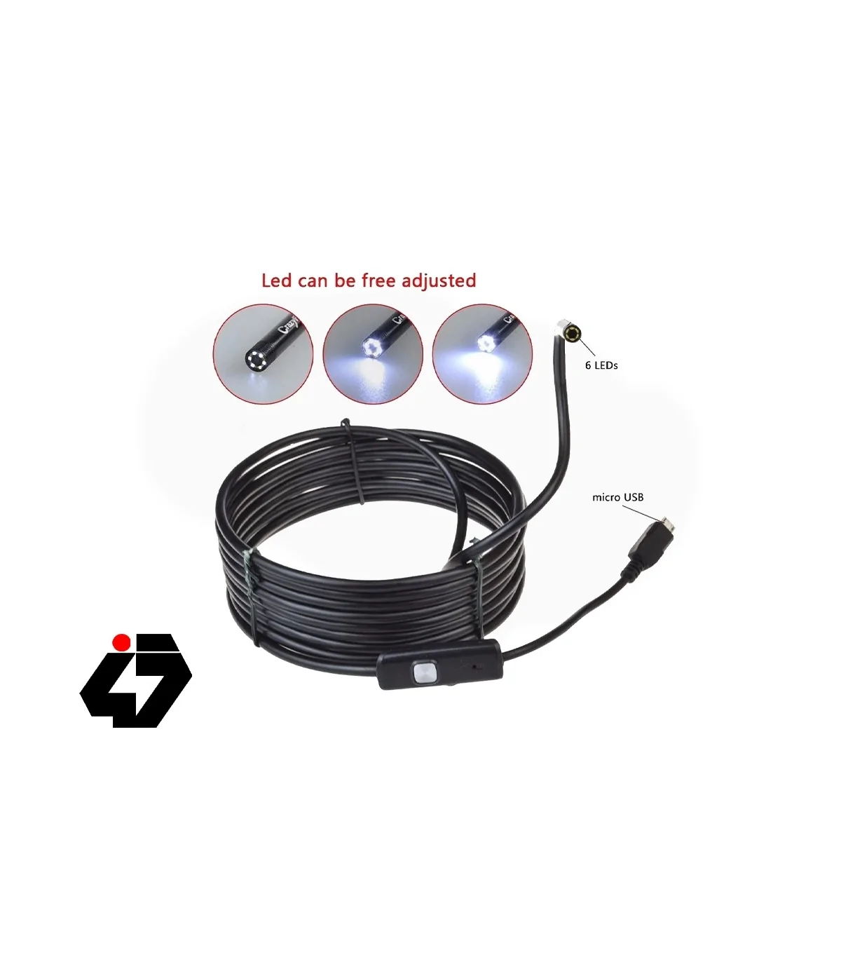 دوربین اندوسکوپی ضدآب (استاندارد IP67) با قطر لنز 7mm و رزولیشن 320x240، قابلیت اتصال به کامپیوتر و گوشی های اندروید (از طریق OTG) و امکان عکس برداری ، فیلم برداری توسط نرم افزار
