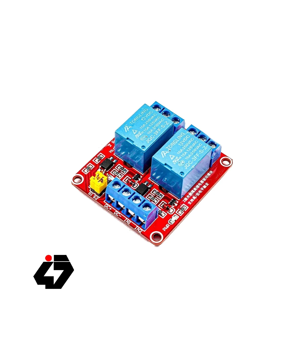 ماژول رله 2 کانال 12 ولت با تحمل بار 10 آمپر برای هر کانال