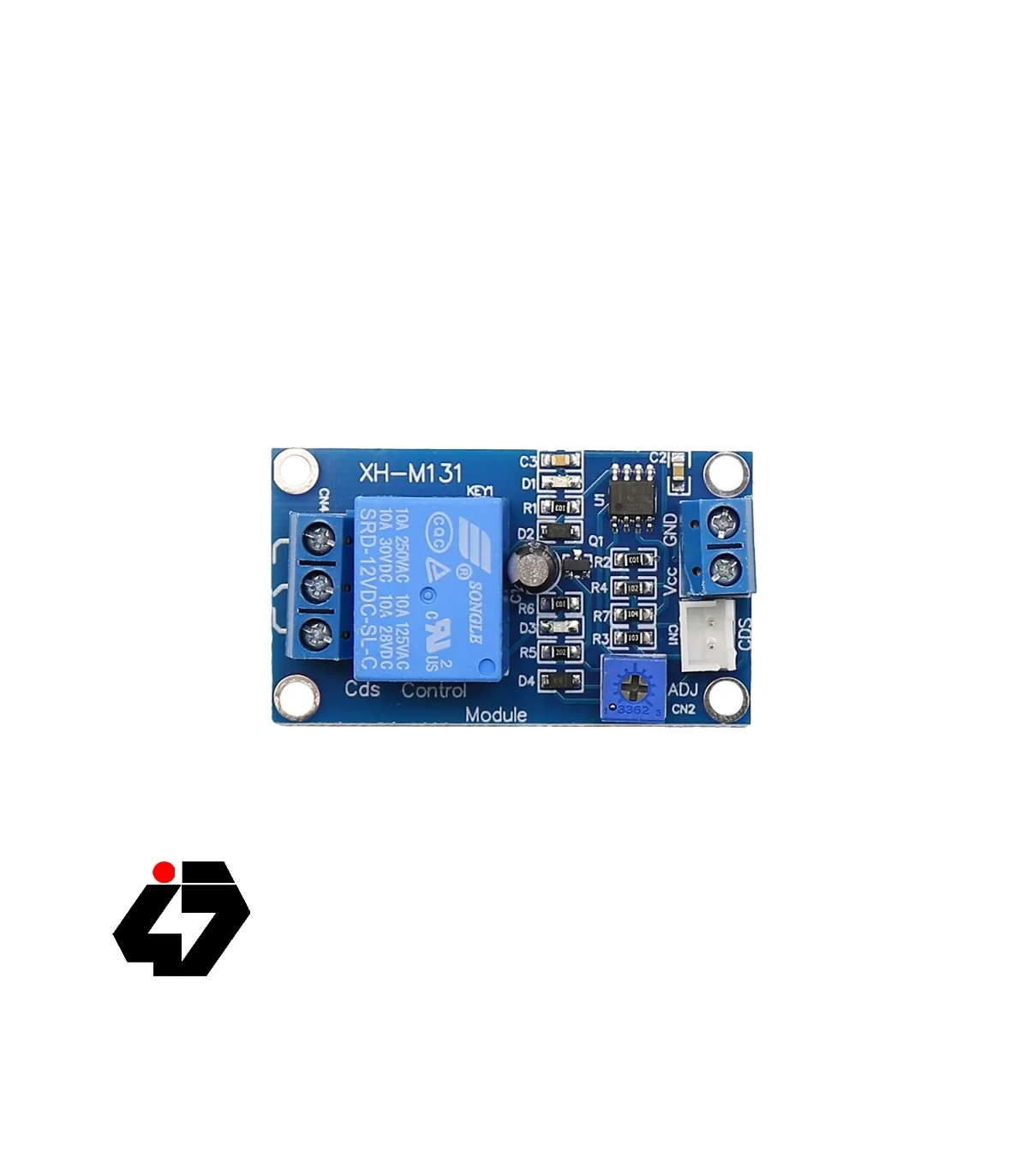 ماژول رله با کنترل مبتنی بر فتوسل و ولتاژ کاری 12 ولت دارای یک پتانسیومتر برای تنظیم حساسیت نور