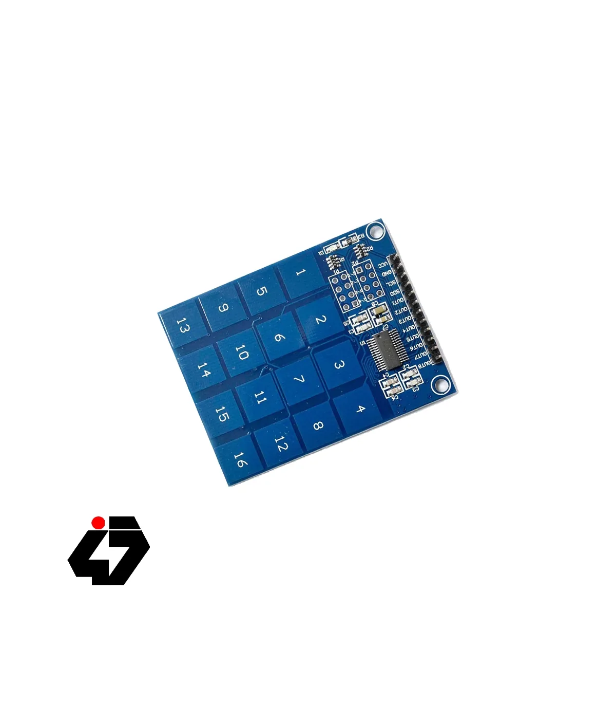 این ماژول یک کیپد لمسی 16 کلیدی 4x4 است که برخلاف کیپدهای مکانیکی، از دکمههای لمسی استفاده میکند و تجربه بهتری در استفاده ارائه میدهد. به دلیل نداشتن قطعات مکانیکی، این کیپد دوام بیشتری نسبت به کیپدهای مکانیکی دارد. این ماژول خروجی دیجیتال برای 8 کلید اول و خروجی دیجیتال I2C برای خواندن وضعیت هر 16 کلید فراهم میکند. پروتکل I2C تنها به دو اتصال نیاز دارد و مستقیماً به آردوینو، رزبری پای، NodeMcu، ESP8266 و ESP32 قابل اتصال است.