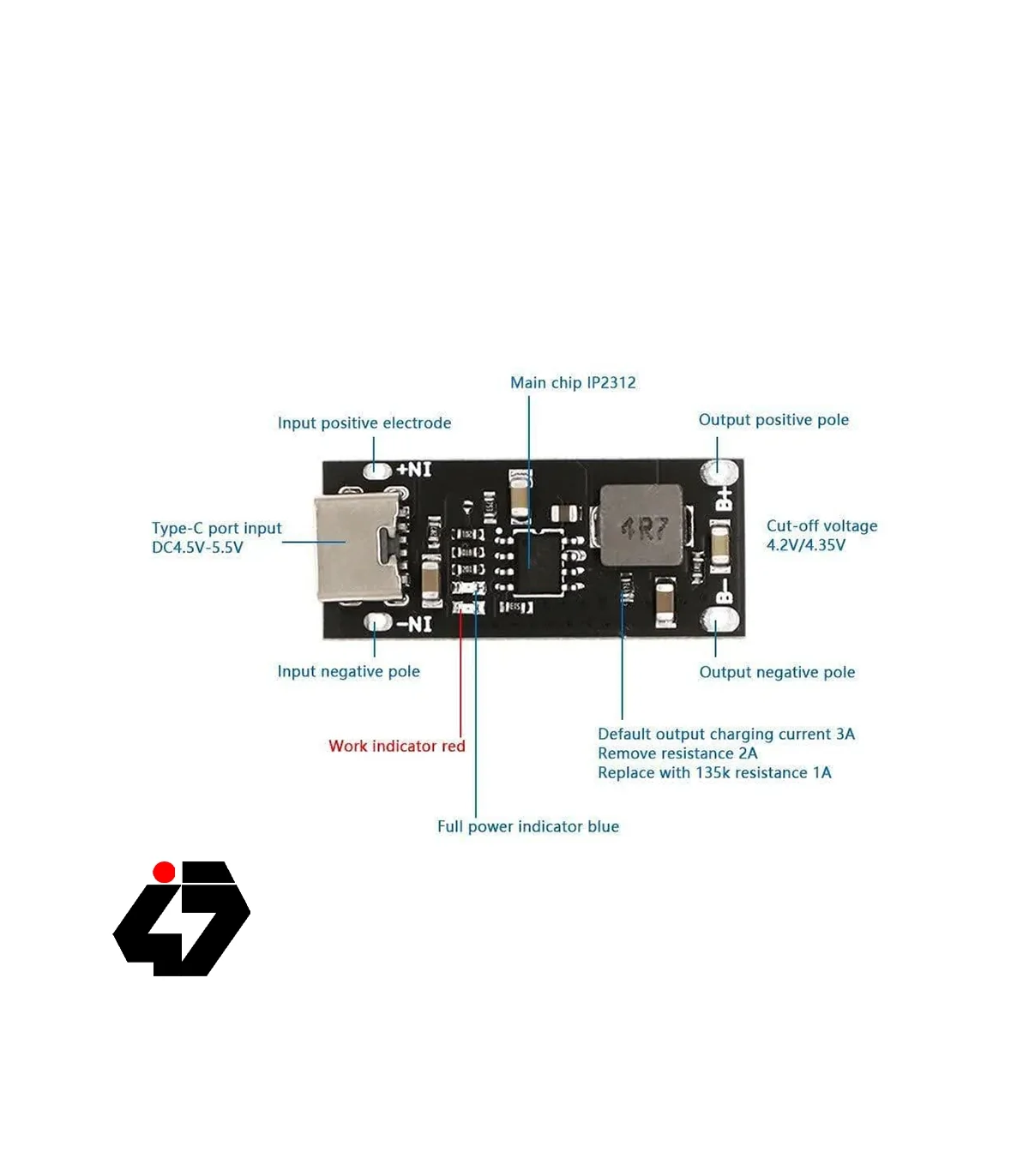 کاربرد ماژول شارژر باتری 1 سل 3 آمپر فست شارژ IP2312: