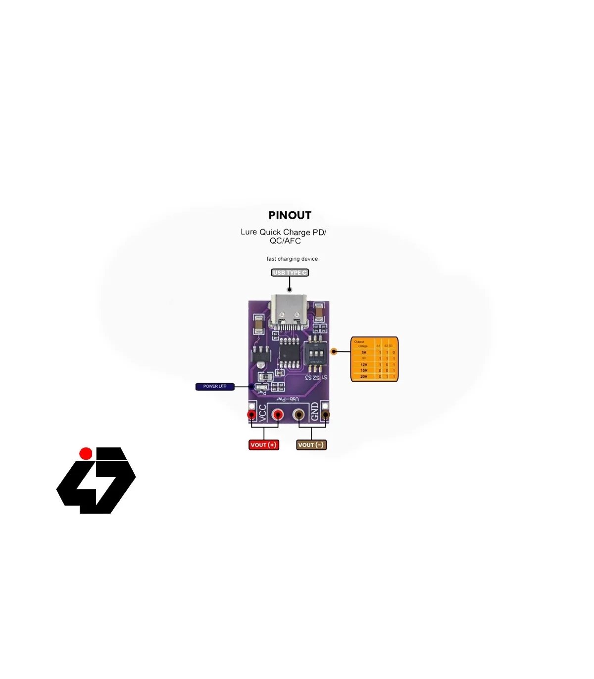 Fast charging protocols: PD2.0/PD3.0, QC2.0/QC3.0, and AFC Voltage: 5V, 9V, 12V, 15V, 20V(voltage step is not supported) Voltage regulation: According to the table on the back of the board, adjust the dip switch to control the voltage output