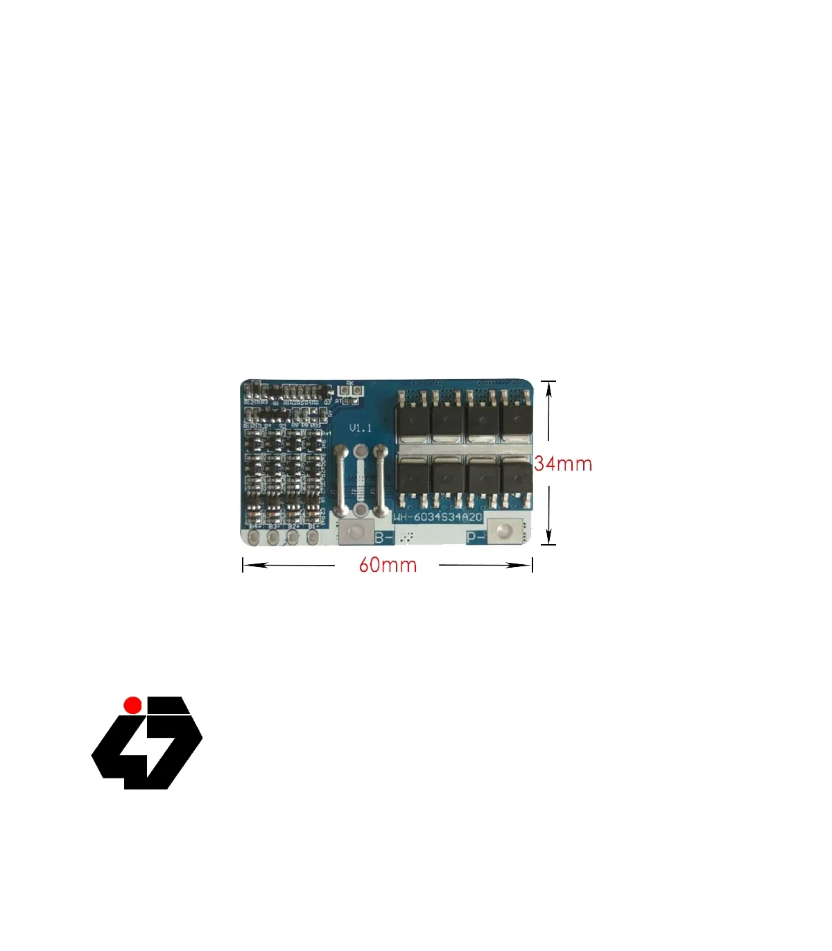 ماژول محافظ دشارژ و شارژ یا ماژول های (BMS(Battery Management System برای شارژ چهار باتری 18650Lithium - Ion/Polymer به صورت سری با حداکثر جریان 20 آمپر با عمل حفاظت در برابر شرایط نامطلوب مانند شارژ و دشارژ بیش از حد، جریان بیش از حد و اتصال کوتاه؛ طراحی شده است.