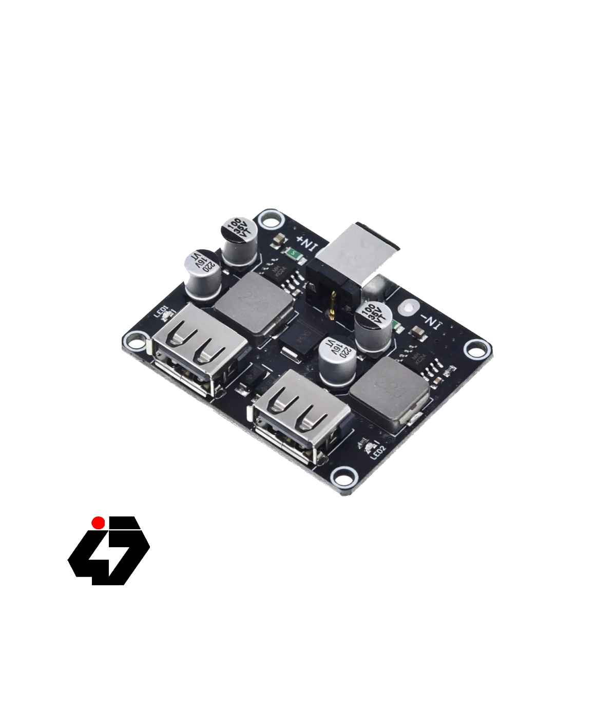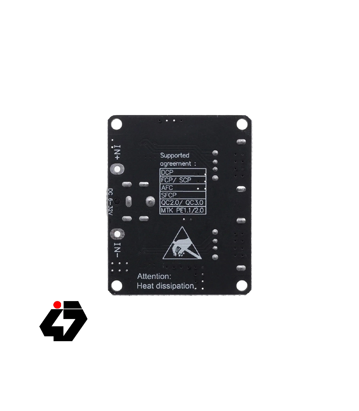 ماژول کاهنده و شارژ (جریان بالا) با ولتاژ ورودی 6 الی 32 ولت و 2 خروجی پیش فرض 5 ولت USB با پشتیبانی از شارژ شریع QC3.0
