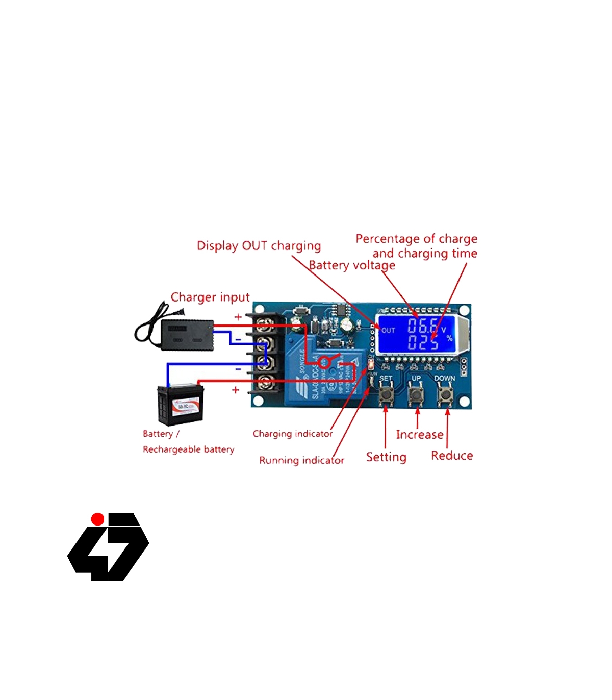 ماژول کنترل شارژ باتری دیجیتال مدل XY-L30A ابزاری برای مدیریت فرآیند شارژ باتریهای مختلف از جمله باتریهای سرب اسیدی است. این ماژول در محدوده ولتاژی 6 تا 60 ولت کار میکند و با داشتن نمایشگر LCD، اطلاعاتی همچون ولتاژ فعلی، درصد شارژ باتری و زمان سپریشده برای شارژ را بهصورت همزمان نمایش میدهد. یکی از ویژگیهای اصلی این ماژول، قابلیت کنترل خودکار شارژ است؛ با تنظیم محدوده ولتاژ بالا و پایین، زمانی که ولتاژ باتری به حد پایین برسد، رله فعال شده و فرآیند شارژ آغاز میشود، و به محض رسیدن به ولتاژ بالا، رله قطع شده و شارژ بهصورت خودکار متوقف میگردد.