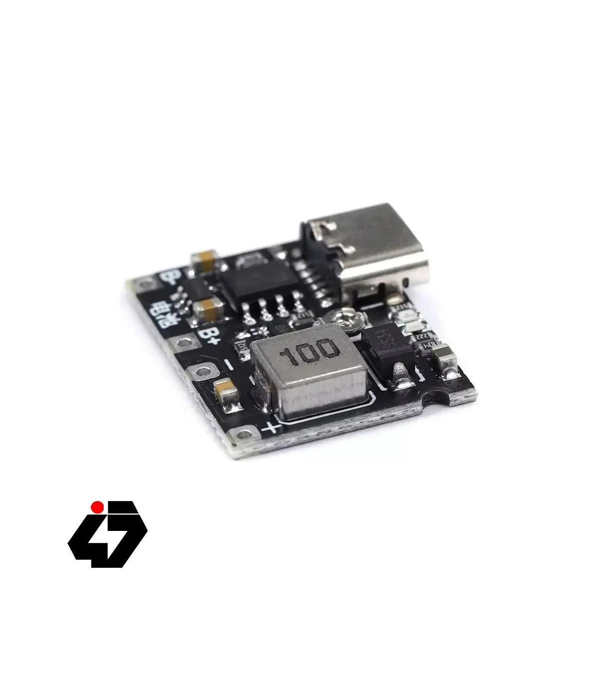 این ماژول با ورودی USB Type-C طراحی شده و قابلیت شارژ باتری های لیتیومی تک سل (3.7V) را با جریان تا 1 آمپر فراهم میکند.