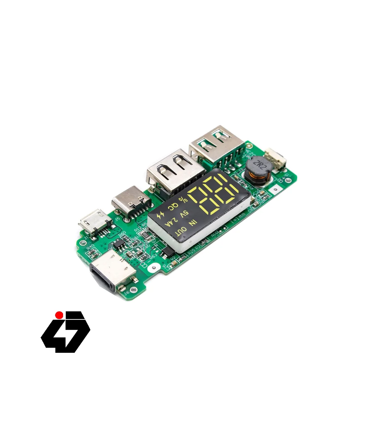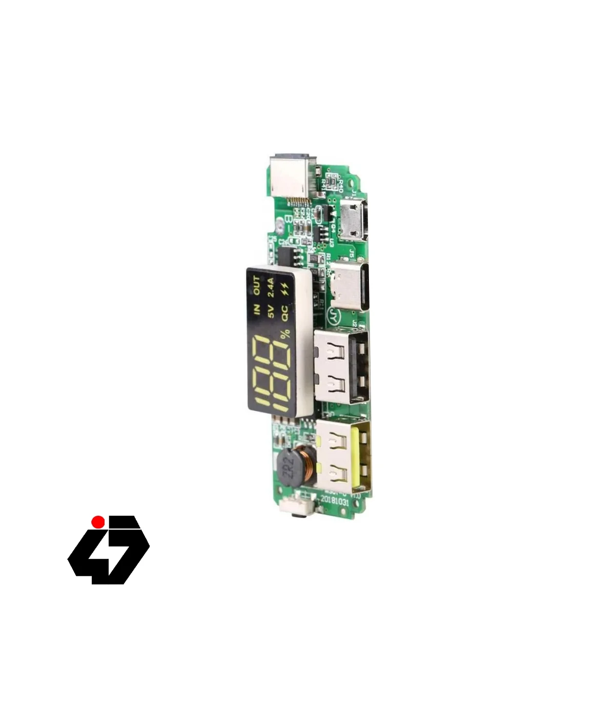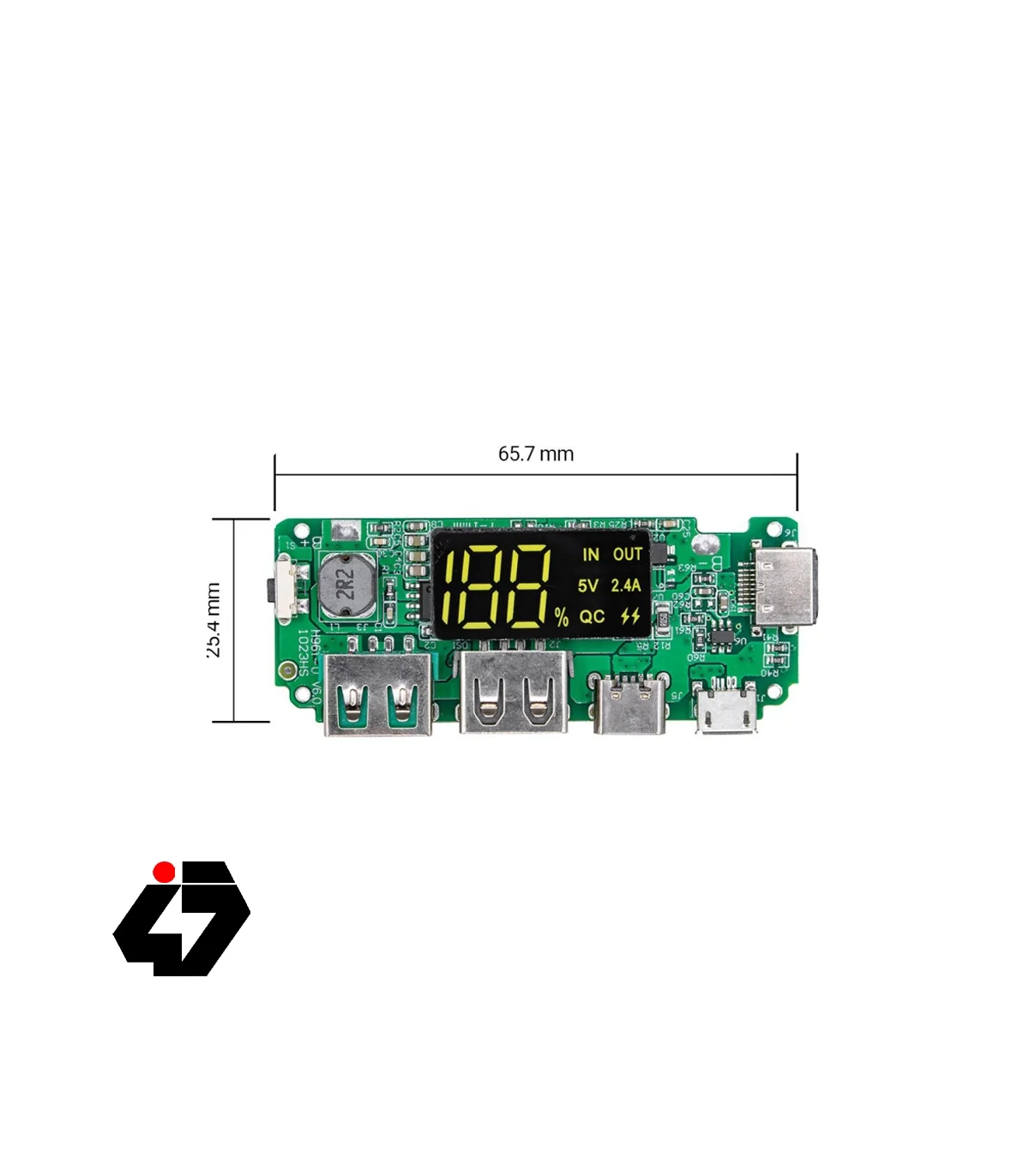 ماژول شارژر / دشارژر باتری لیتیومی دارای 2 خروجی USB با ورودی های میکرو USB و Type-C و Lightning مناسب برای ساخت پاور بانک