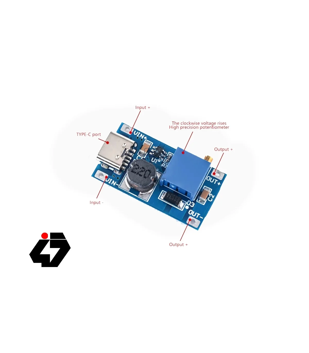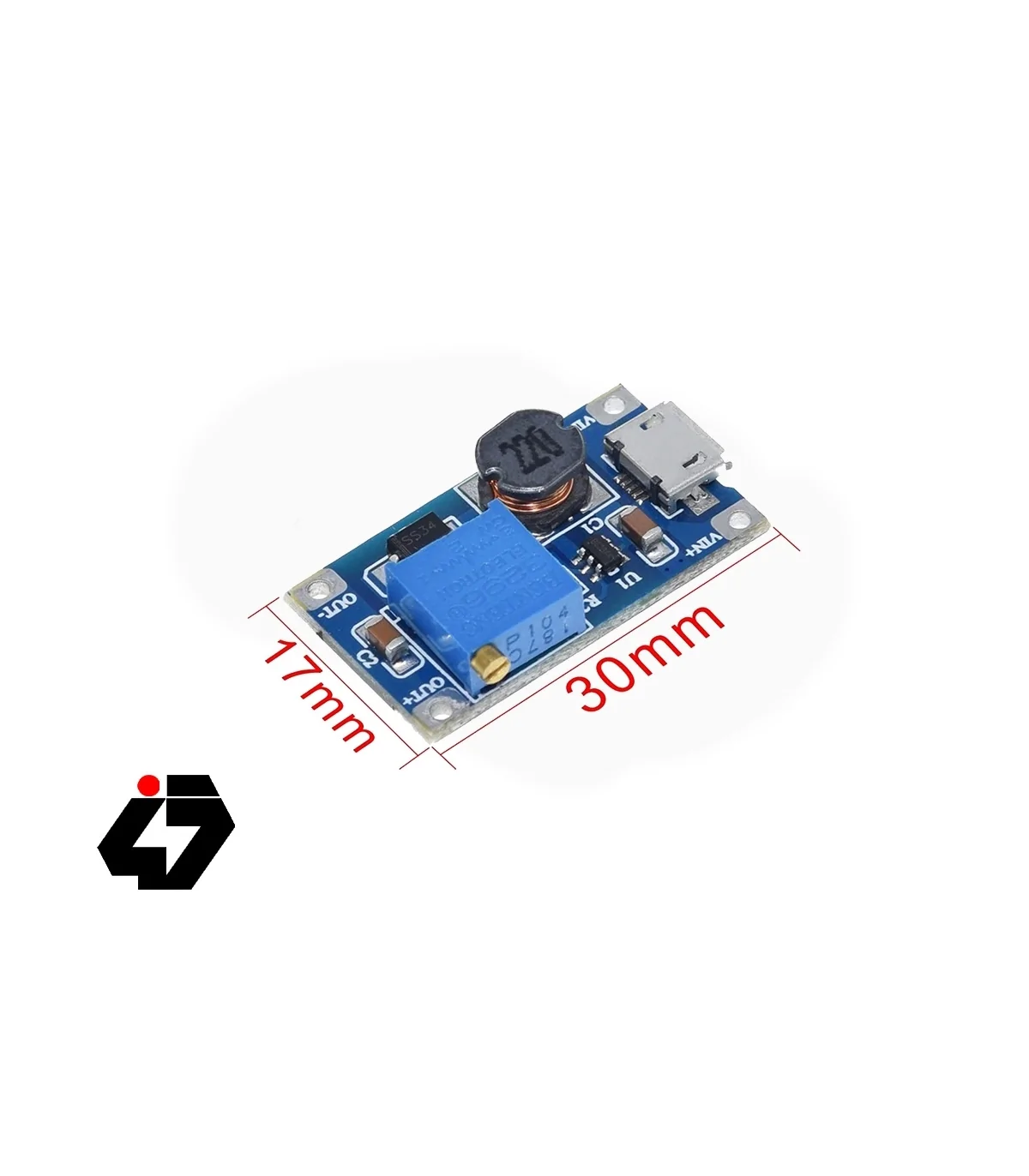 ماژول رگولاتور DC به DC افزاینده 2 آمپر دارای ورودی میکرو USB و قابلیت تنظیم ولتاژ خروجی