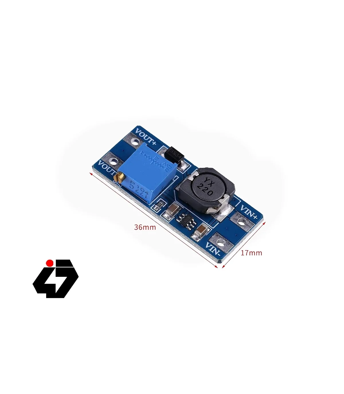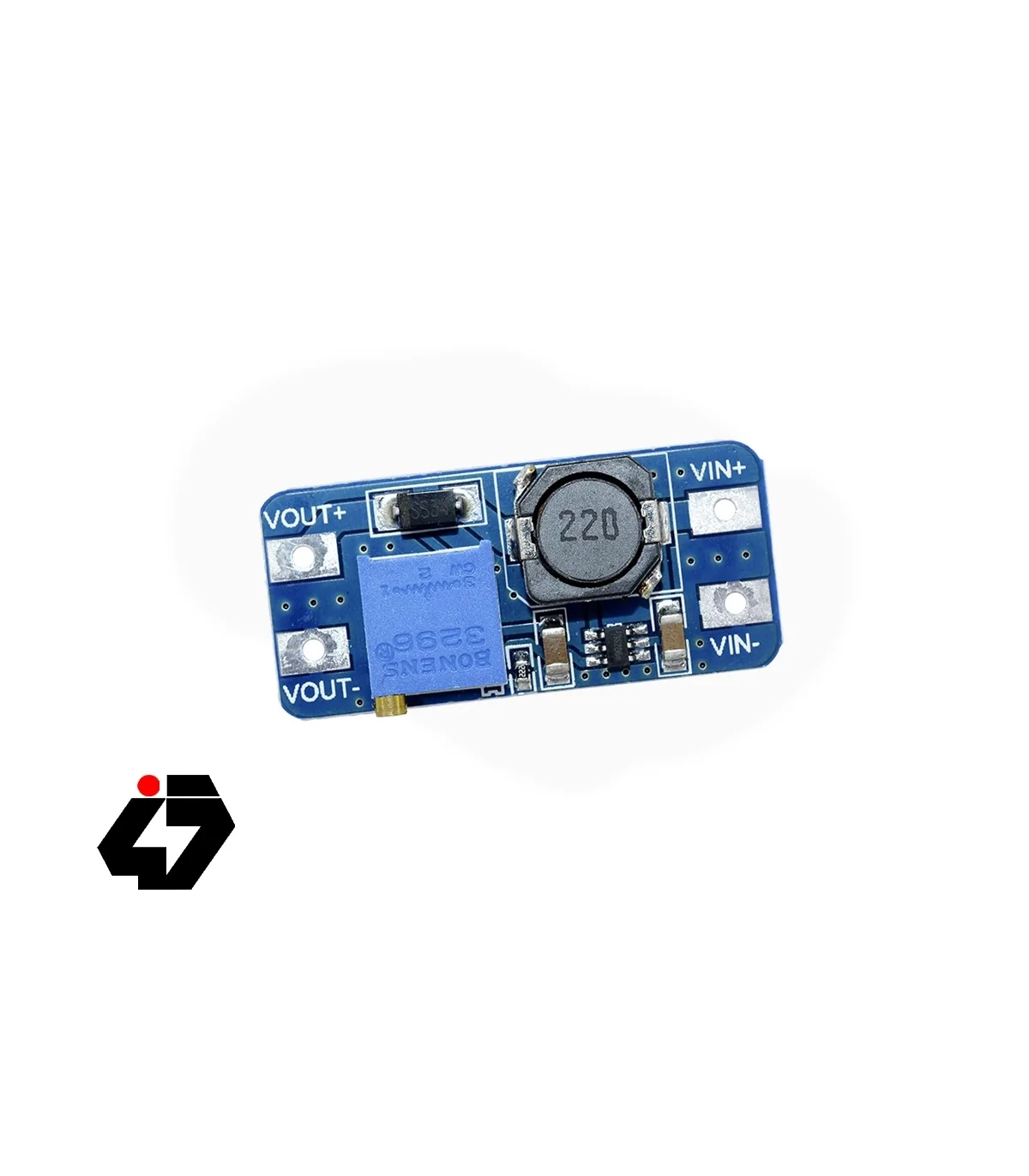 ماژول تقویت کننده ولتاژ DC با استفاده از آی سی MT3608 ولتآژ دریافتی را به صورت تقویت شده در خروجی تحویل می‌دهد. تقویت ولتاژ این ماژول با حداکثر جریان ۲ آمپر توسط مولتی ترن روی ماژول قابل تنظیم است..