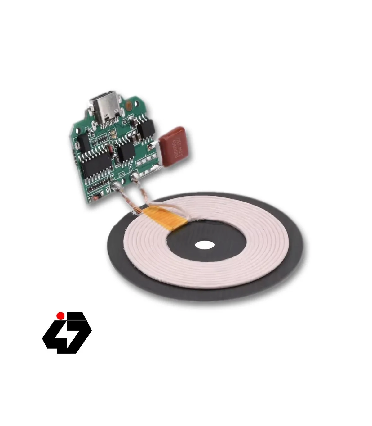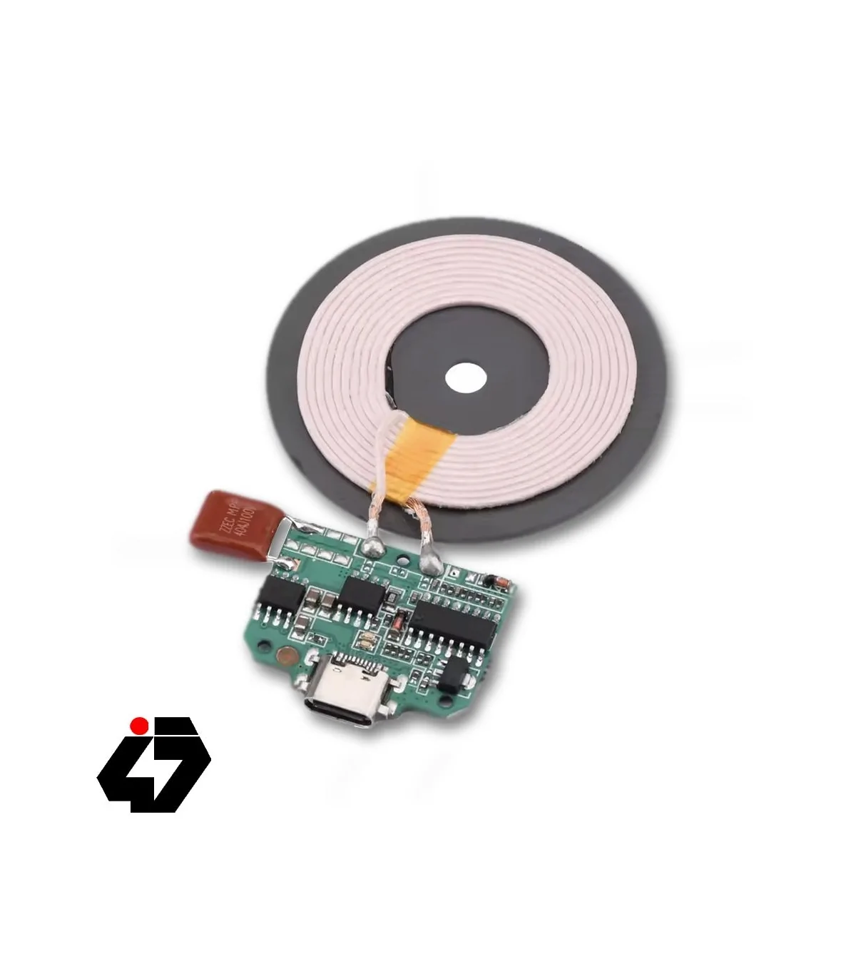 این ماژول با بهره گیری از ورودی Type-C، توان پایدار و جریان مناسب را دریافت کرده و از طریق کویل شارژ همراه، انرژی را به گوشی یا دستگاه گیرنده منتقل میکند.