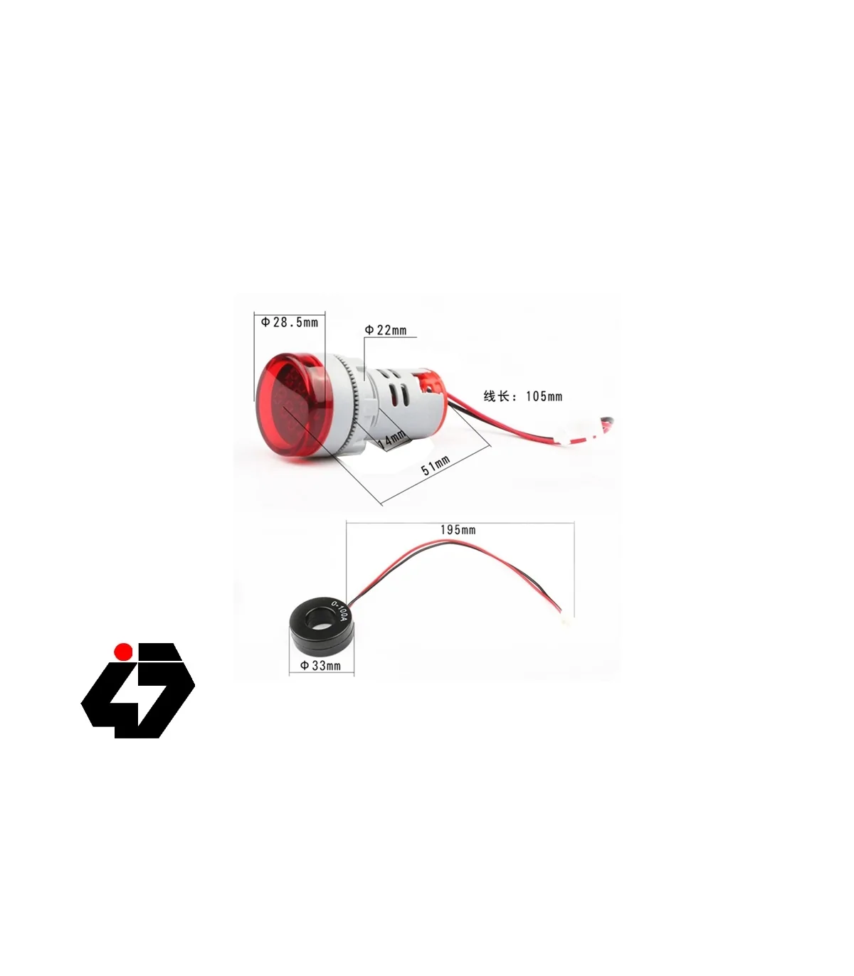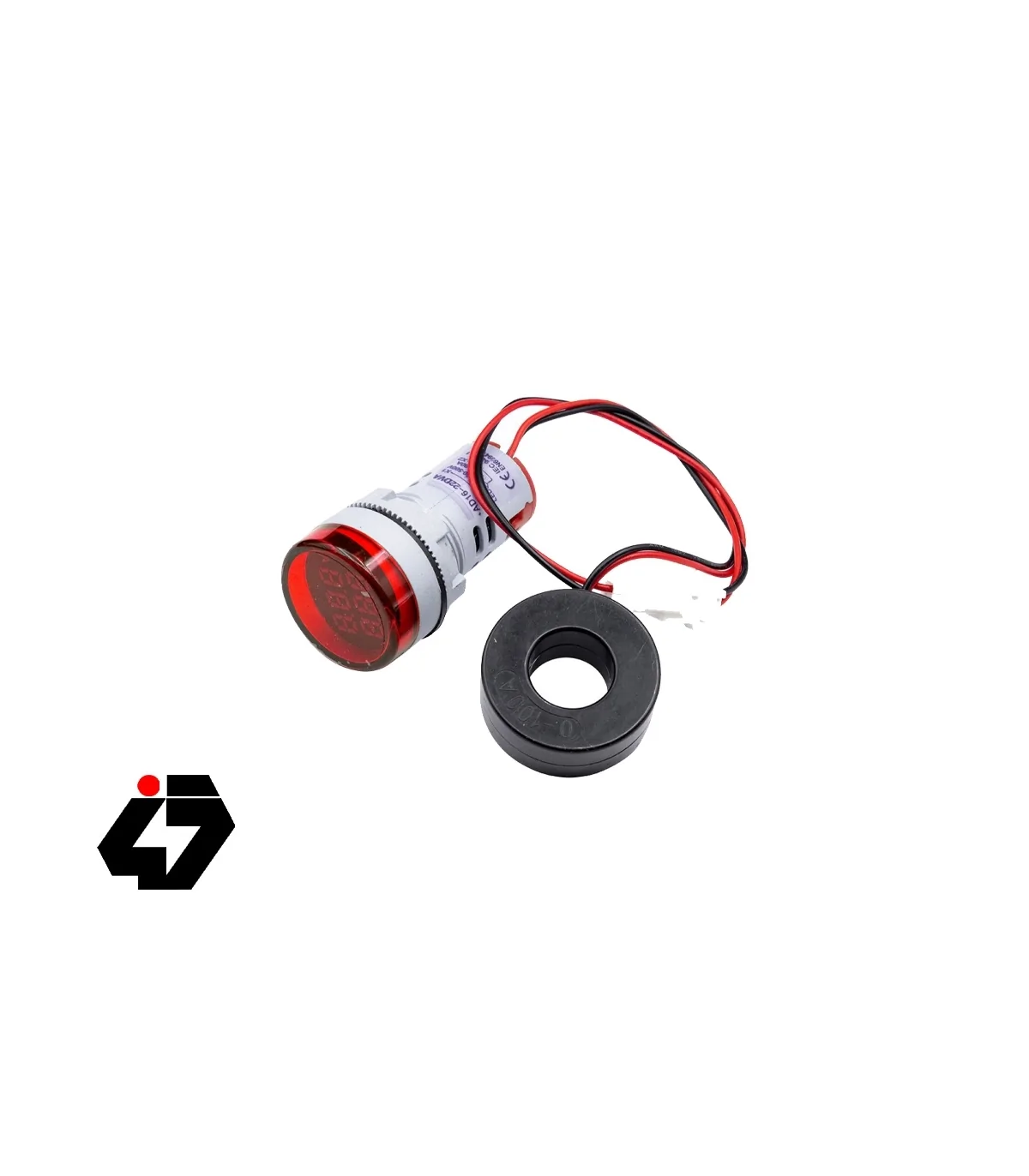 ولتمتر و آمپرمتر چراغ سیگنالی AC500V-100A قرمز گرد به همراه ترانس جریان CT