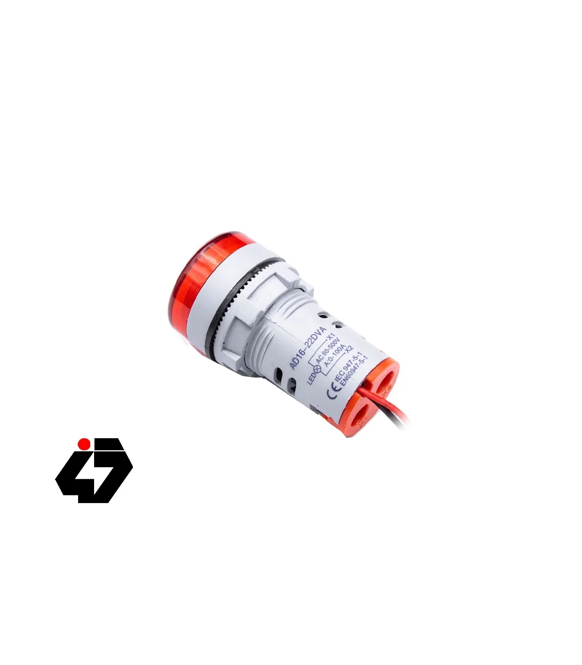 ولتمتر و آمپرمتر چراغ سیگنالی AC500V-100A قرمز گرد مدل AD16-22FVA