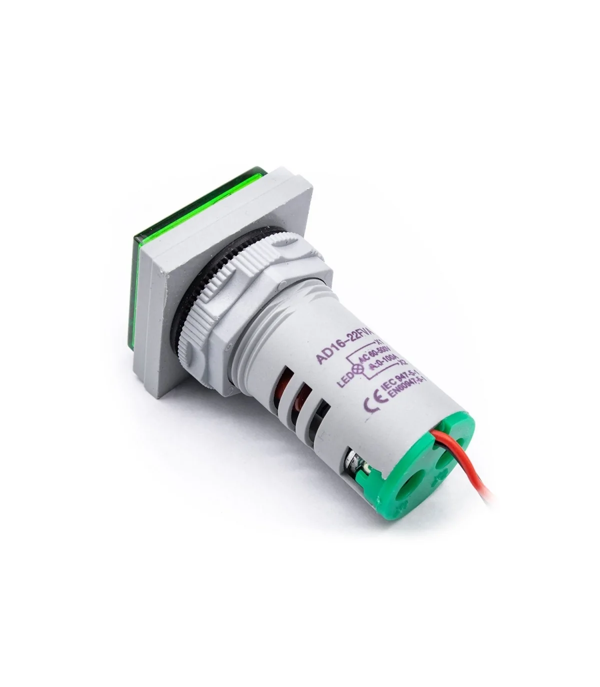 ولتمتر و آمپرمتر چراغ سیگنالی AC500V-100A سبز مربعی مدل AD16-22FVA