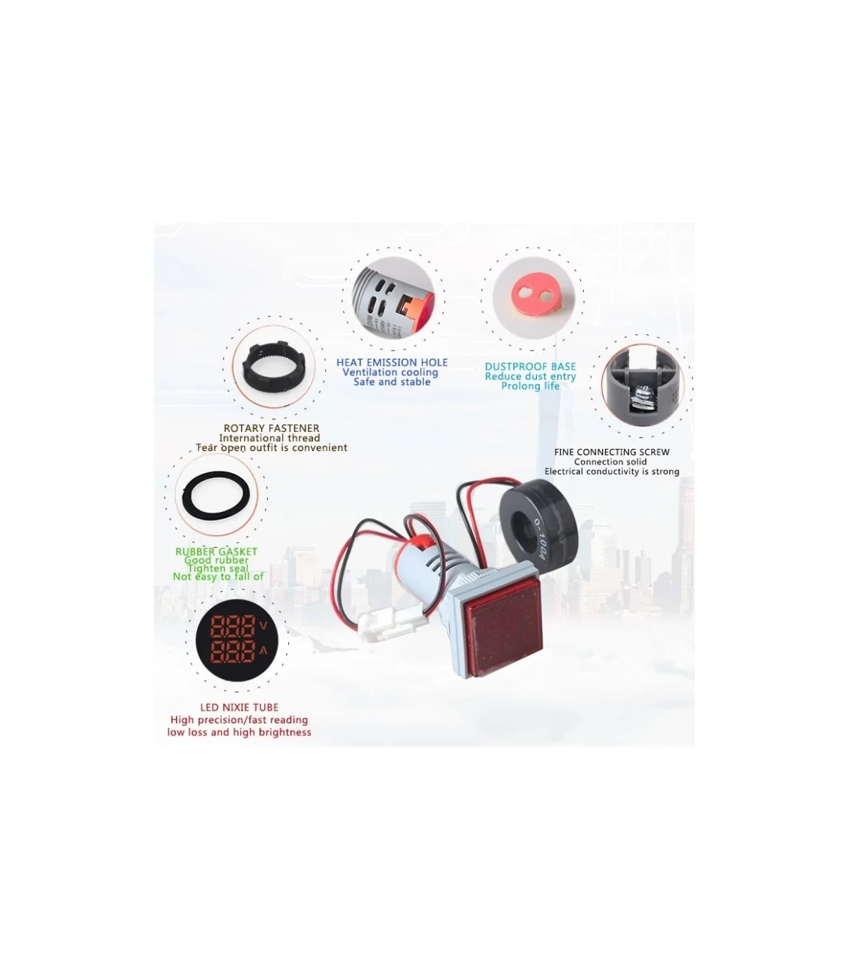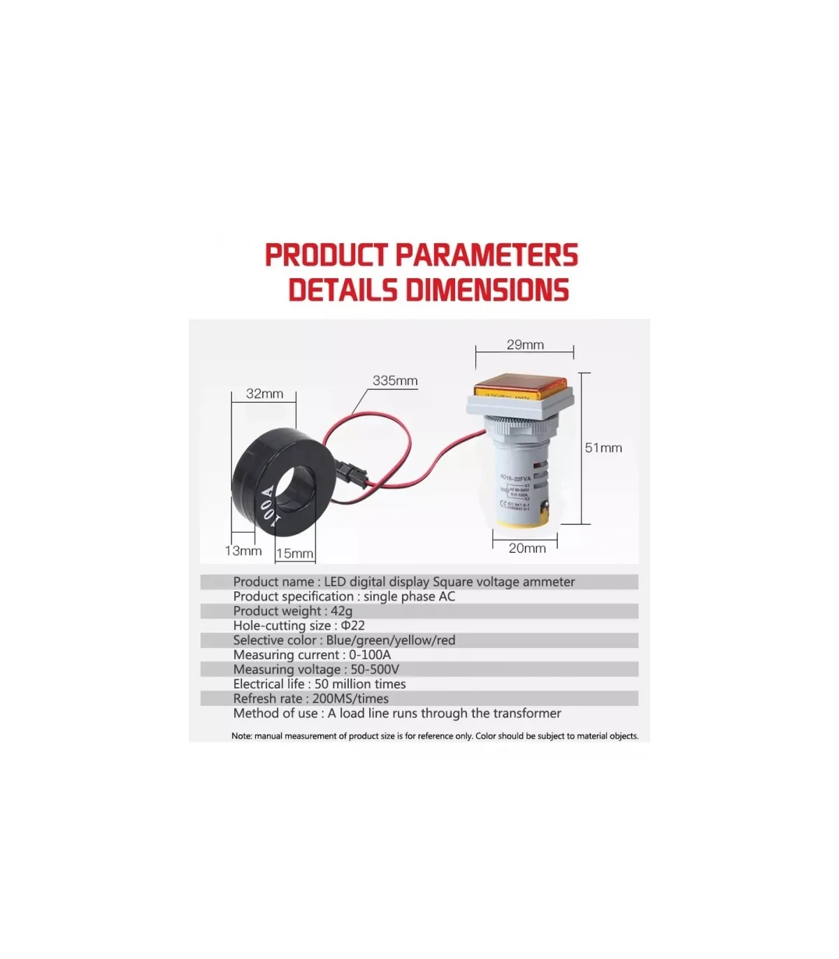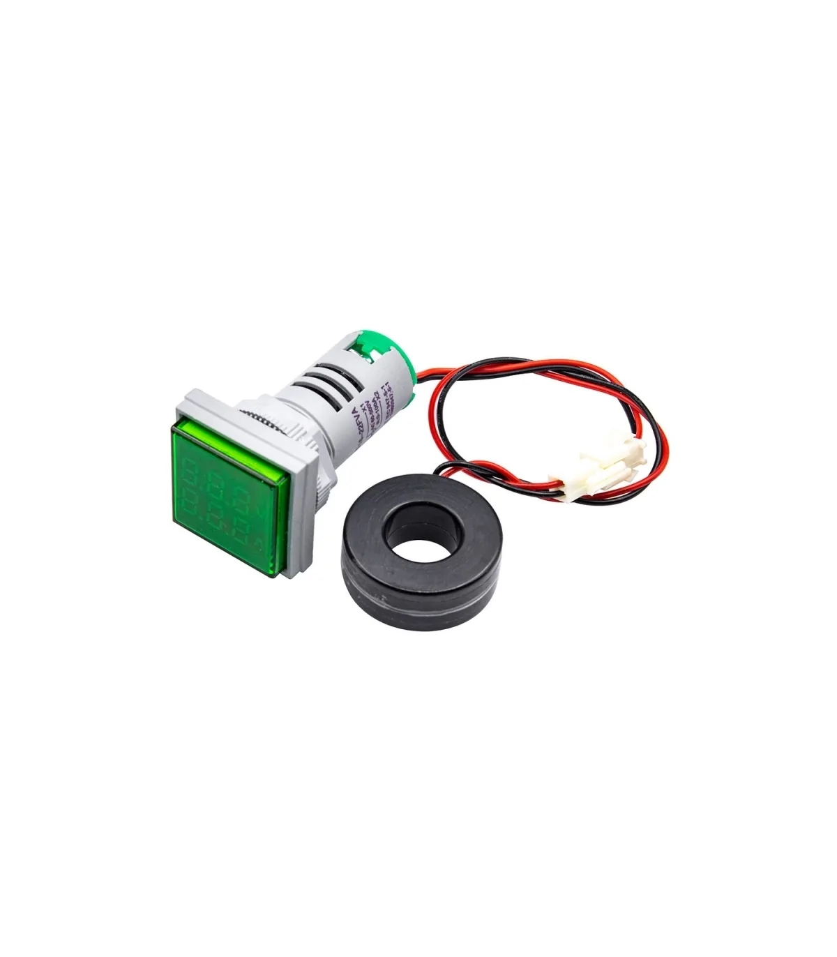 کوتاه: ولتمتر و آمپرمتر چراغ سیگنالی AC500V-100A سبز مربعی به همراه ترانس جریان CT