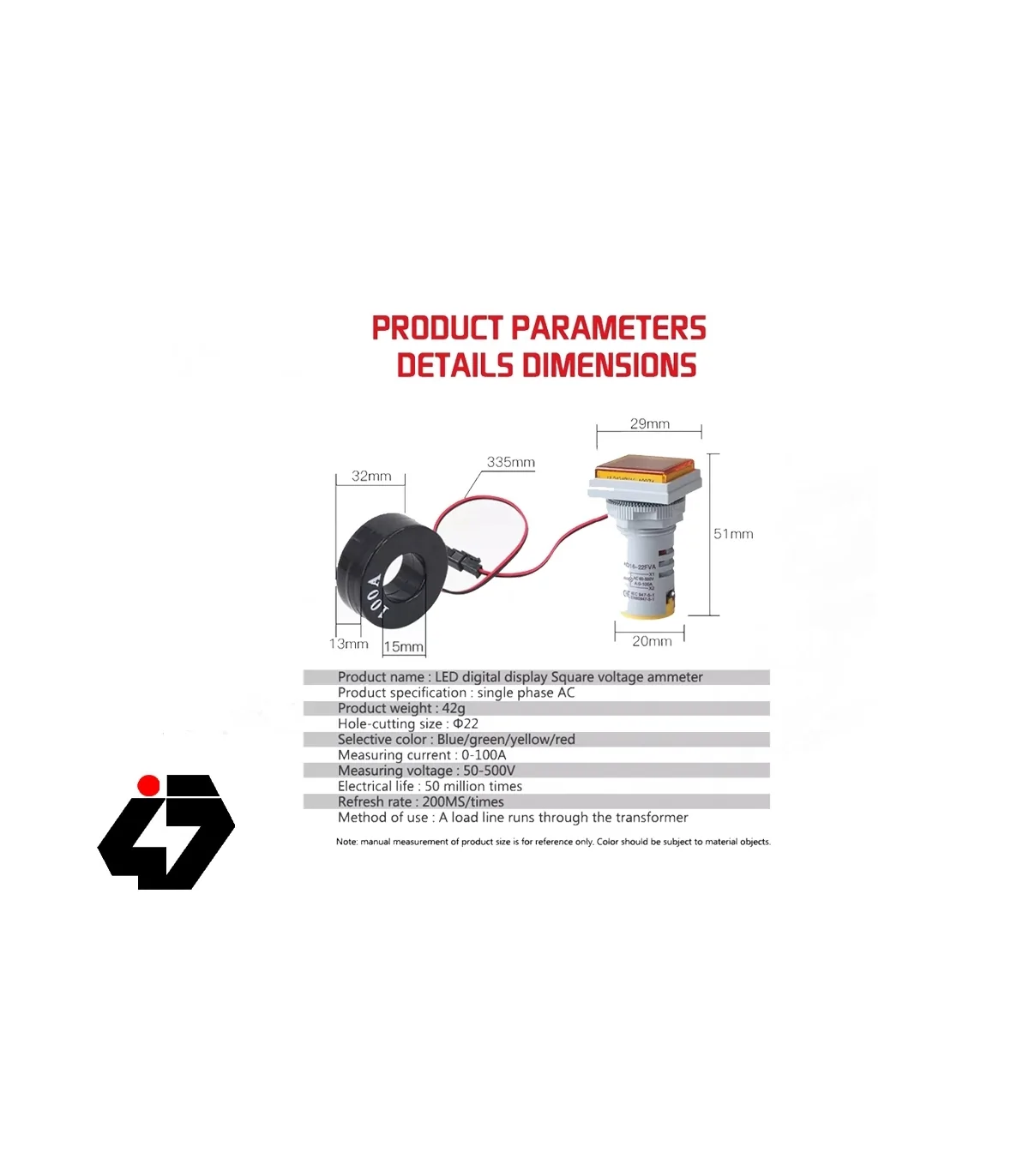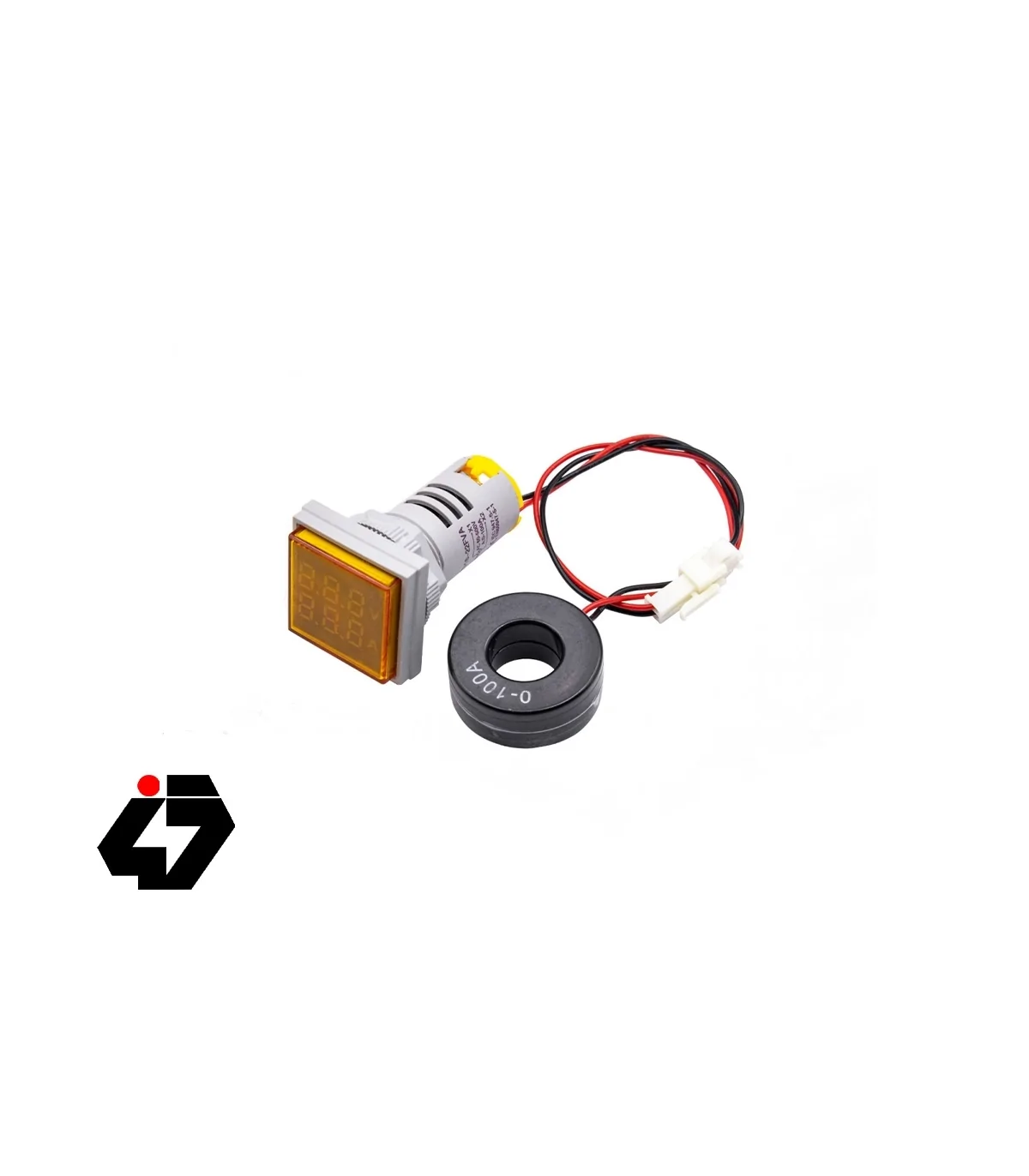 ولتمتر و آمپرمتر چراغ سیگنالی AC500V-100A زرد مربعی به همراه ترانس جریان CT